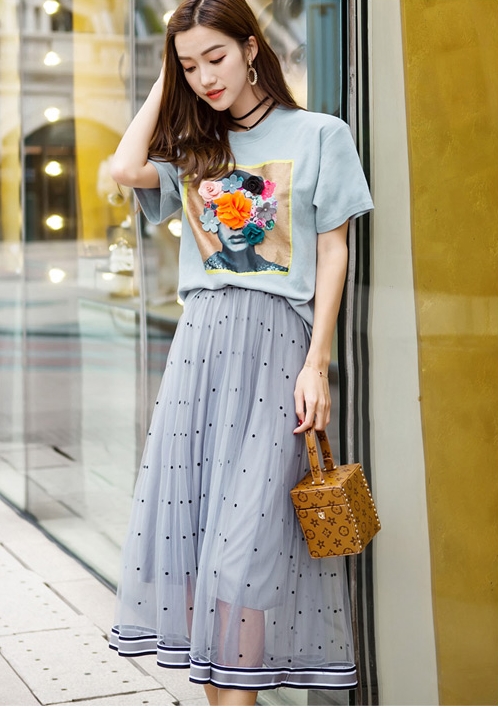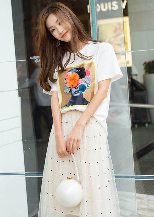 チュール スカート ボトムス ミモレ丈 ロング丈 ドット柄 水玉 フレア バイカラー 透け感 シースルー ウエストマーク 脚長効果 かわいい きれいめ シンプル 上品 エレガント おしゃれ こなれ感 ラブリー キュート ガーリー お出かけ デート 女子会 旅行 着回し 通勤 通学