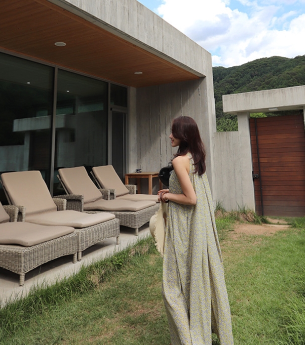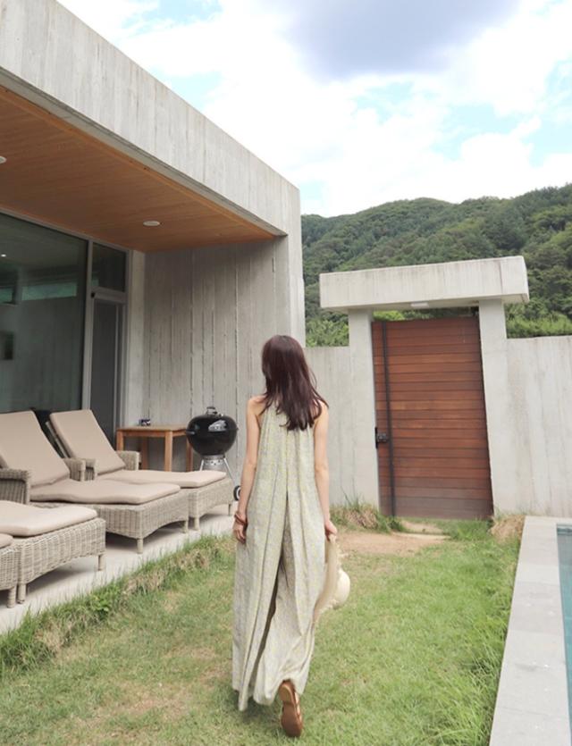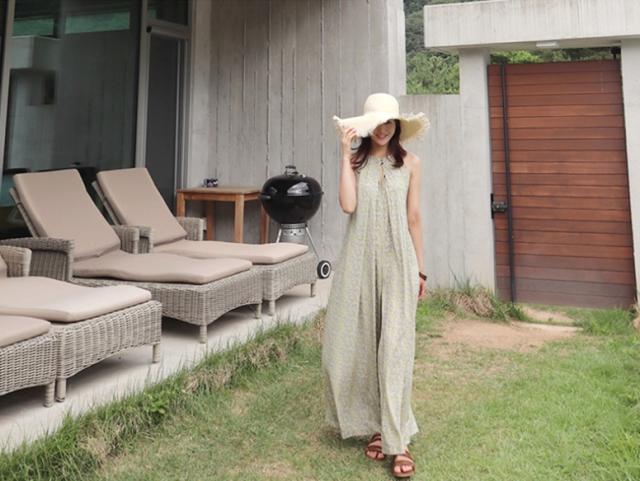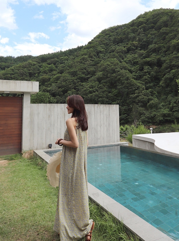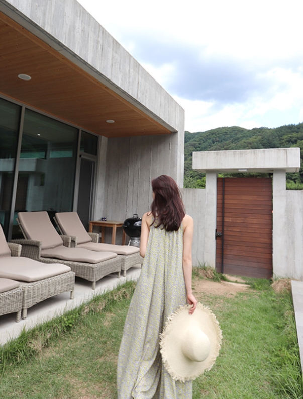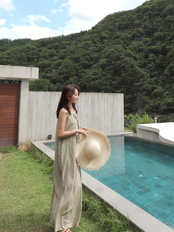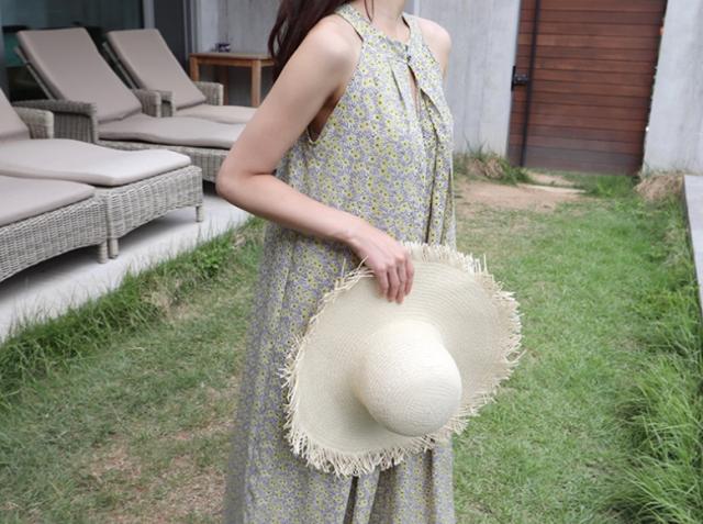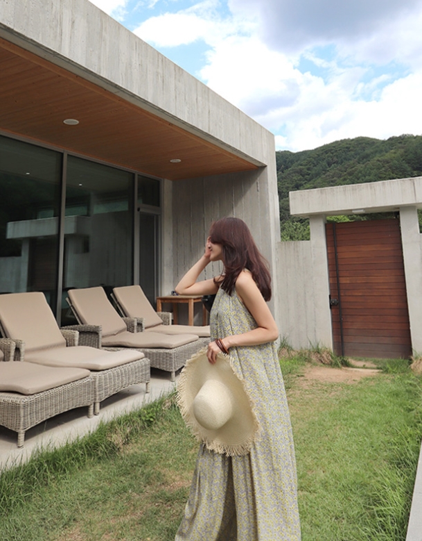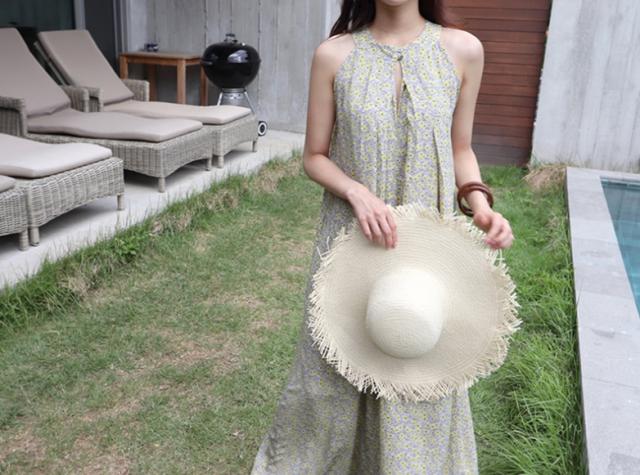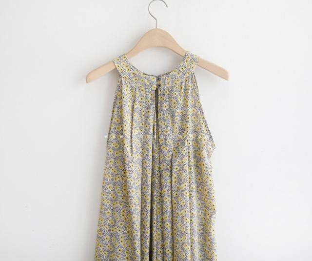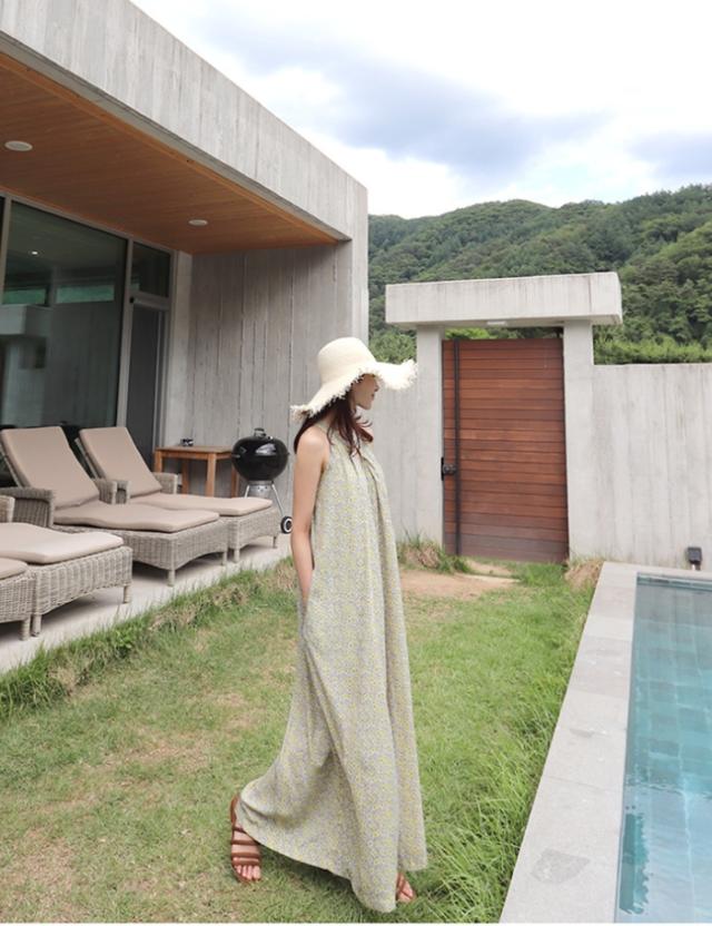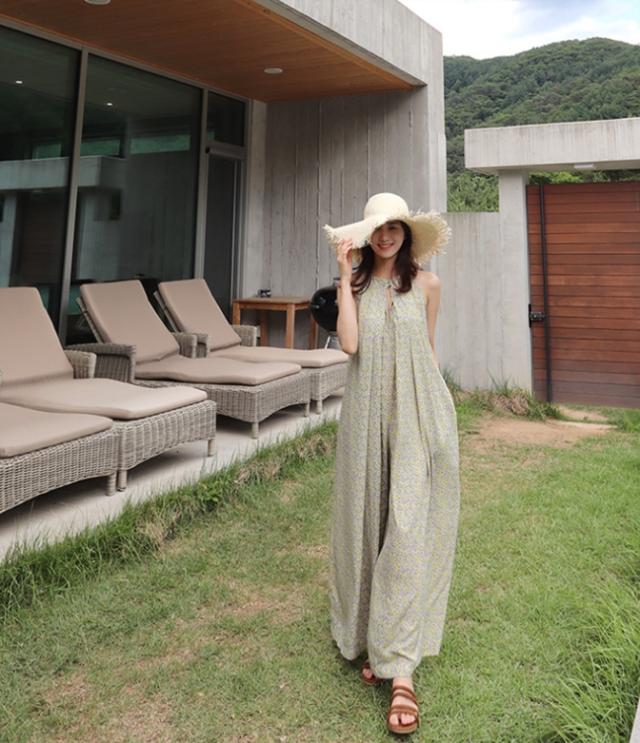 オールインワン 花柄 レディース ロンパース ワイド パンツ ボトムス ロング ノースリーブ ホルターネック ボタン 体型カバー かわいい シンプル カジュアル おしゃれ こなれ感 春 夏 お出かけ デート 女子会 旅行 プール 海 着回し ルームウェア ゆったり シルエット