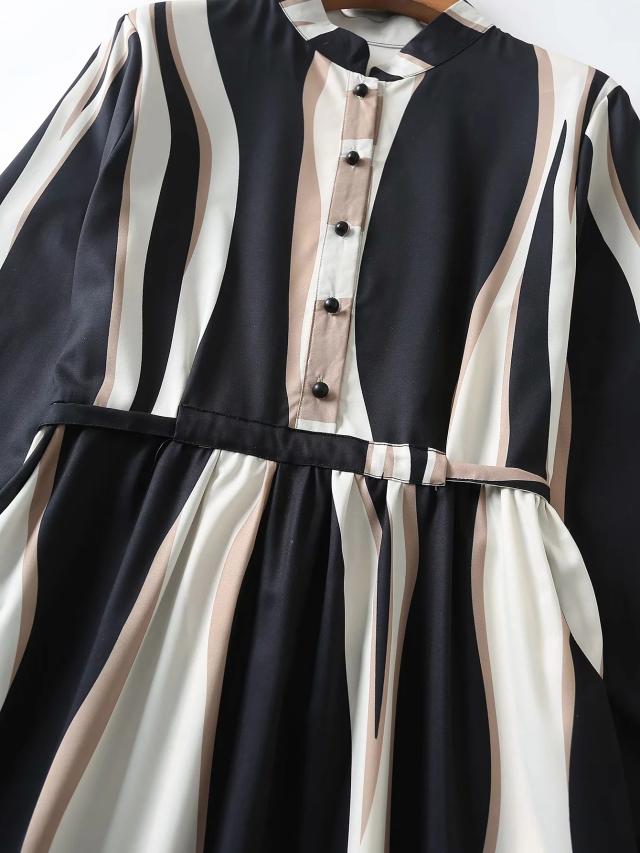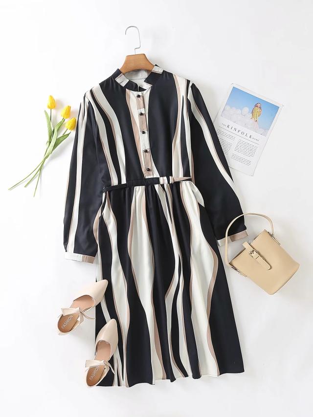ランダムストライプワンピース ワンピース シャツワンピース 袖あり 長袖 スタンドカラー スリット ポリエステル かわいい 大人可愛い きれいめ シンプル カジュアル 大人 おしゃれ お洒落 レトロ 大人可愛い 大人女子 こなれ感 個性的 ストライプ 春 夏 秋 10代 20代 30代 レディース OL 通勤 学生 通学 デート お出かけ 女子会 休日 普段使い 韓国 韓国系 サイズ XS S M L