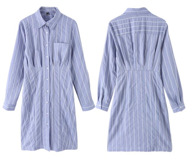 ストライプシャツワンピース ワンピース シャツワンピース 膝下 ミモレ ミモレ丈 ミディアム丈 袖あり 長袖 襟付き ハイウエスト 前開き かわいい 大人可愛い きれいめ シンプル カジュアル おしゃれ お洒落 大人可愛い 大人女子 こなれ感 ストライプ 春 夏 秋 10代 20代 30代 レディース 学生 通学 デート お出かけ 女子会 休日 着回し 普段使い 韓国 韓国系 オルチャン サイズ S M L XL 色展開 青 ブルー