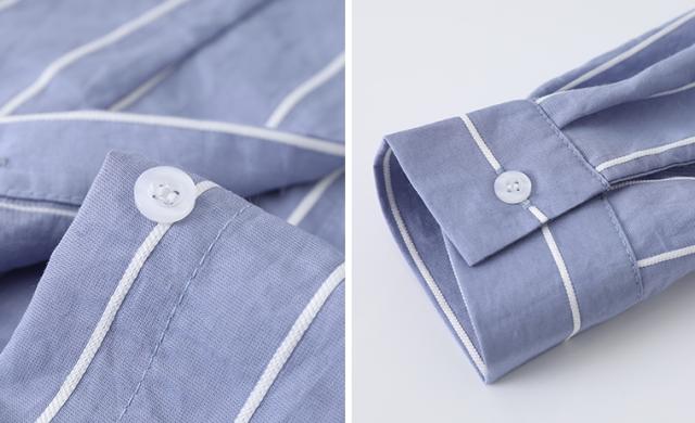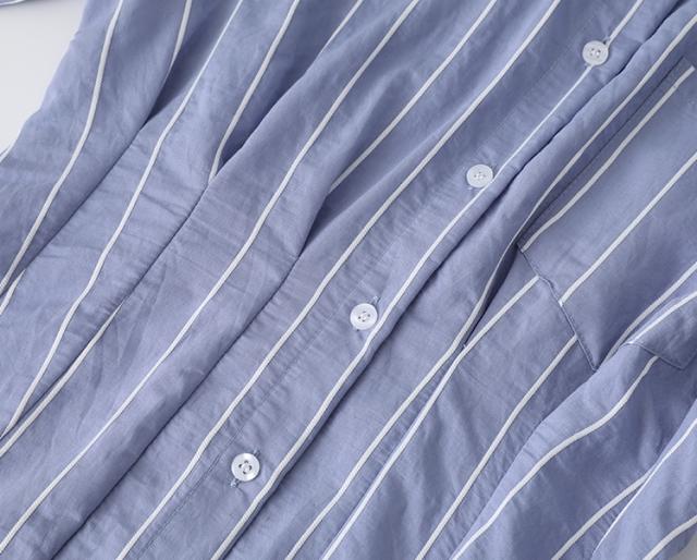 ストライプ シャツ ワンピース 膝下 ミモレ丈 ロング ミディアム丈 袖あり 長袖 襟付き ハイウエスト 前開き かわいい 大人 きれいめ シンプル カジュアル おしゃれ セクシー 清潔感 個性的 女子 こなれ感 ストライプ 春 夏 秋 10代 20代 30代 通学 通勤 デート イベント