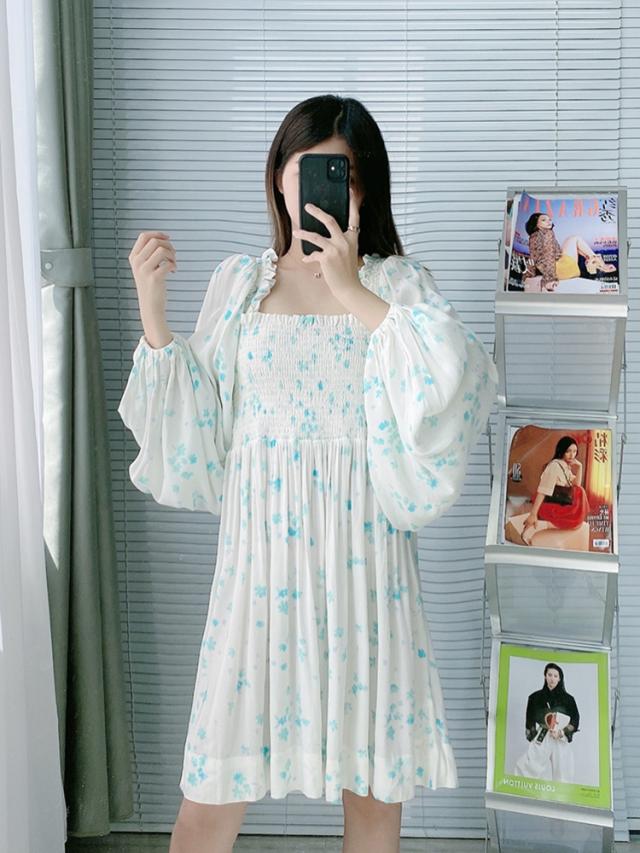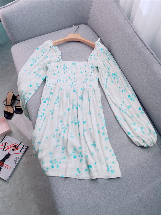 小花柄 シフォン ワンピース ワンピ シャーリング マイクロミニ チュニック丈 スクエアネック オフショルダー 肩出し 長袖 ボリューム袖 シンプル カジュアル セクシー かわいい 肌見せ 学生 大人 可愛い 普段使い デート お出かけ 旅行 リゾート 春夏 秋 キュート 伸縮性