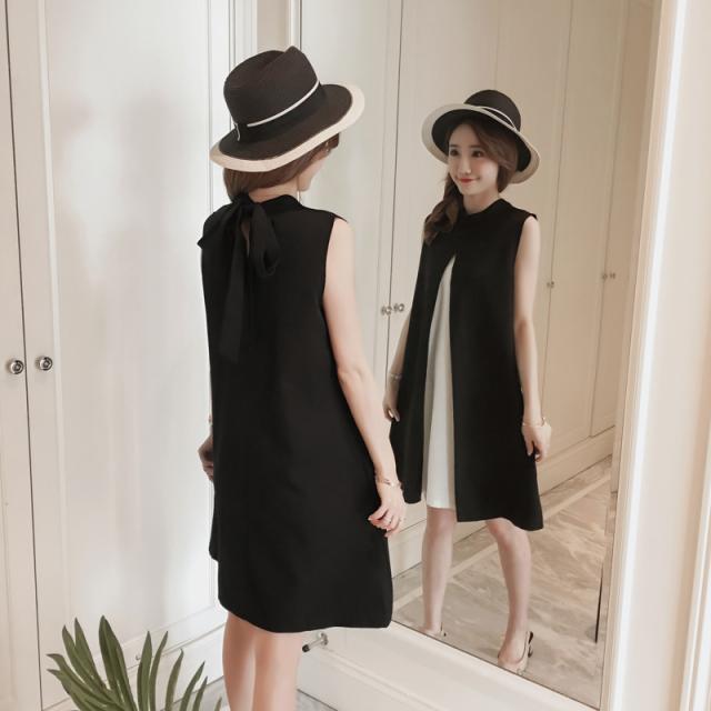 ノースリーブワンピース フレアワンピース ひざ丈 ノースリーブ ハイネック ボトルネック フレア Aライン リボン きれいめ シンプル カジュアル おしゃれ 大人可愛い 大人女子 個性的 クール モード バイカラー フォーマル お出かけ デート 無地 春 夏 秋 冬 10代 20代 30代