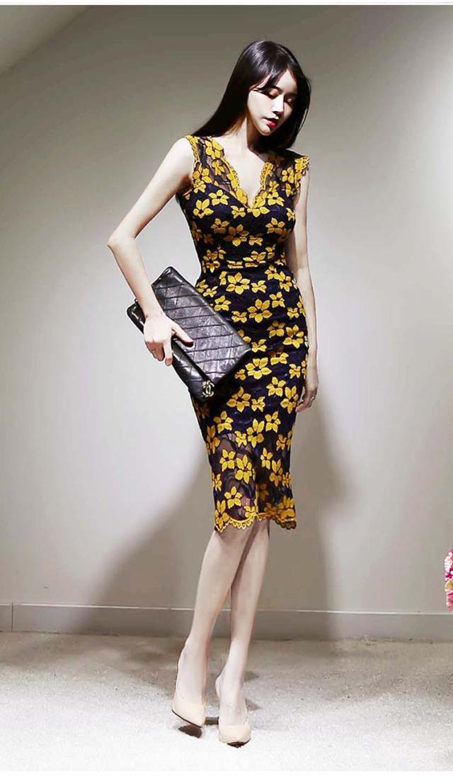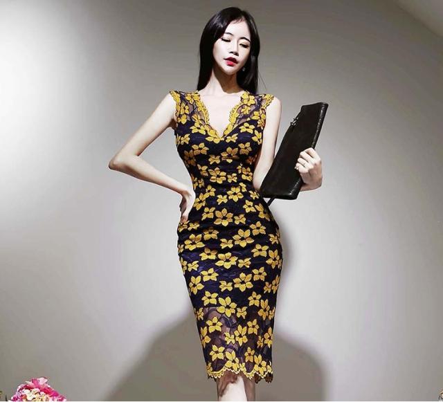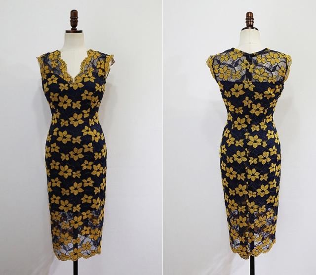 花柄 タイト ワンピース スカート ミニ タイト ワンピドレス ミニ 膝上 ノースリーブ Vネック 細身 Iライン レース 透け感 きれいめ おすすめ 大人 かわいい 透け感 上品 クール セクシー エレガント 主役級 存在感 花柄 結婚式 二次会 イベント 披露宴 デート 20代 30代