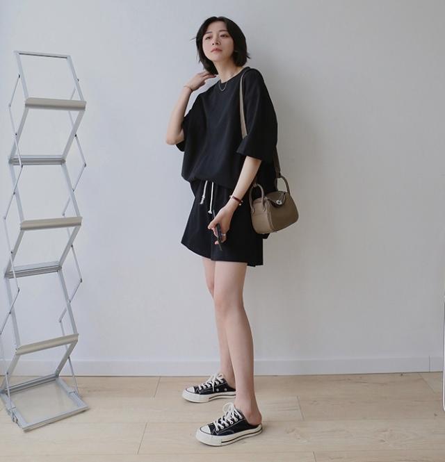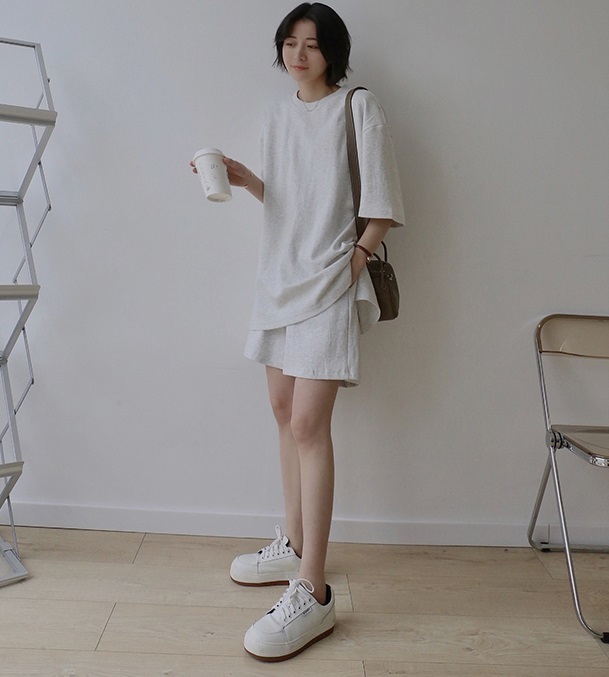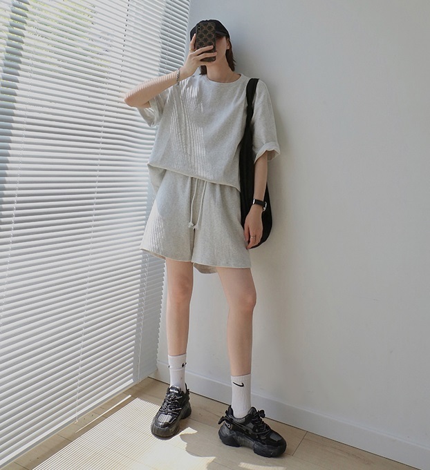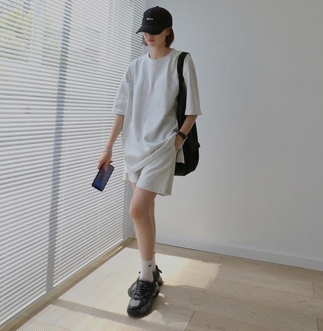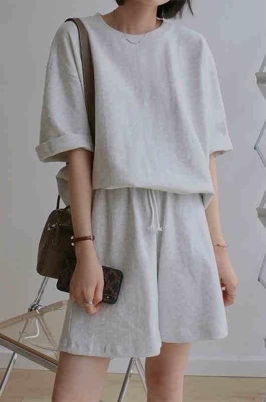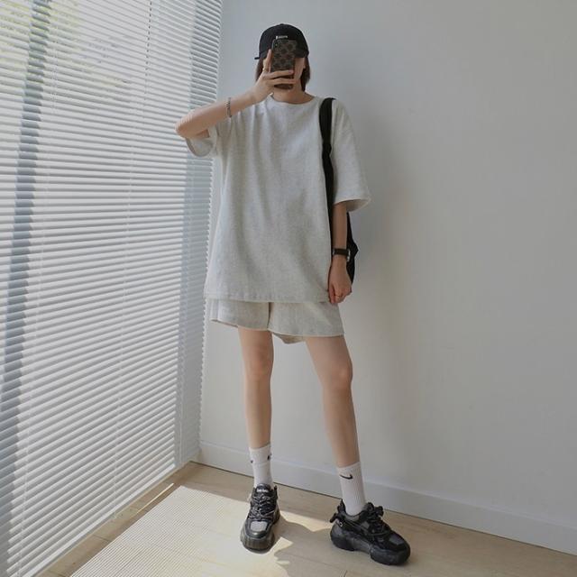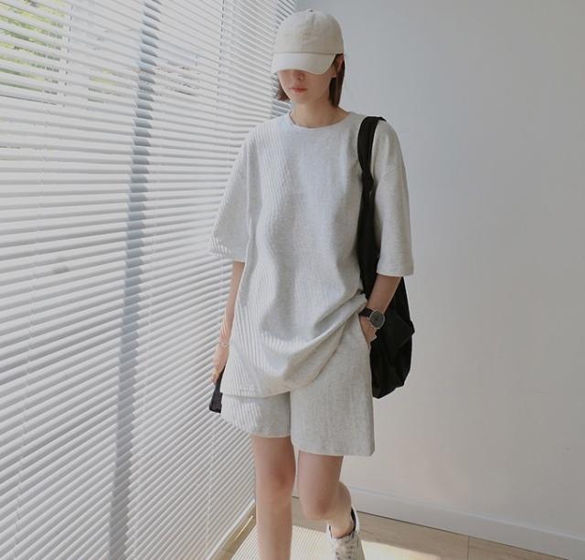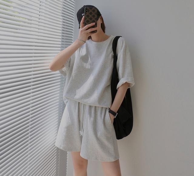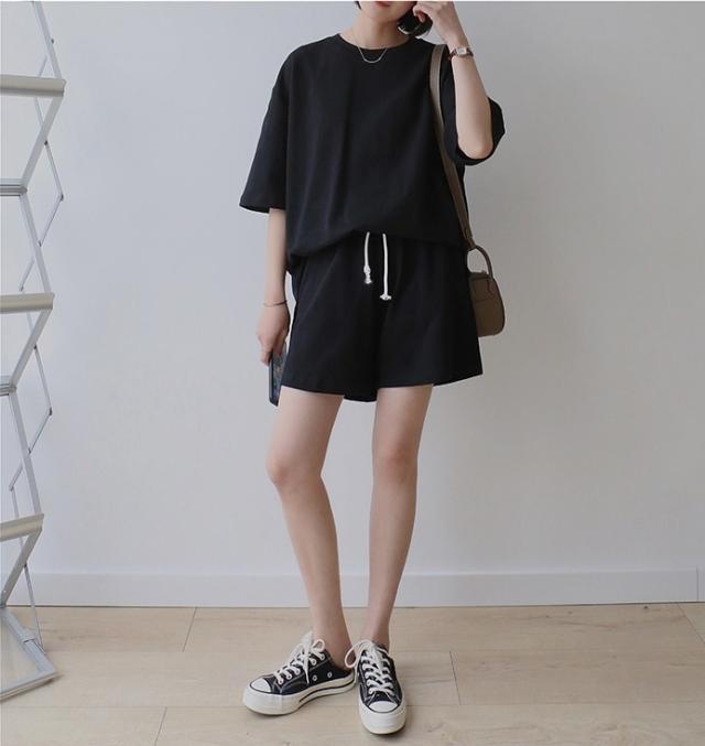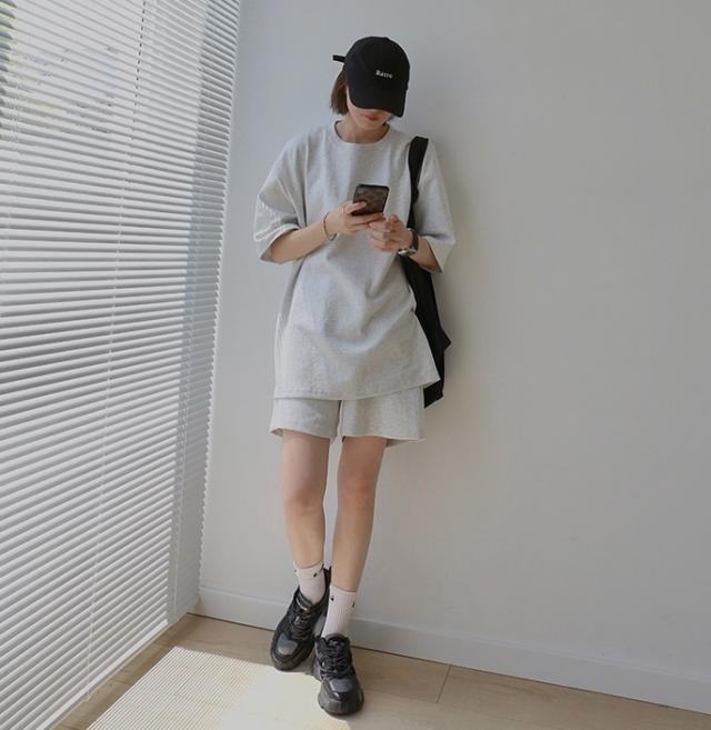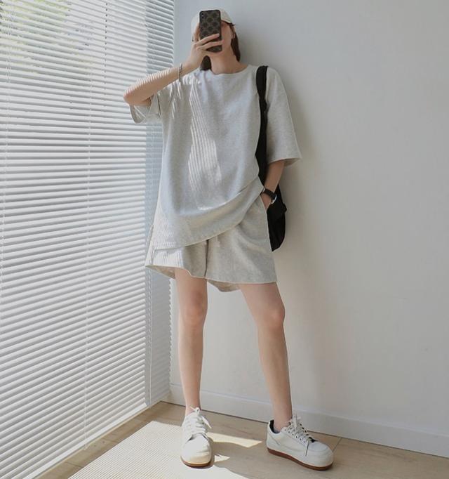セットアップ 上下セット トップス ボトムス 2点セット Tシャツ ラウンドネック 半袖 袖あり ロールアップ ショートパンツ ツーピース ショート丈 パンツ ワイドレッグ ワイド シンプル 無地 ラフ 楽ちん 涼しい ストリート カジュアル ルーズ ゆる ゆったり 大人可愛い かわいい 可愛い 大人女子 おしゃれ お洒落 通勤 通学 学生 お出かけ デート 旅行 休日 普段着 普段使い 着回し ルームウェア 女の子 レディース 10代 20代 夏 S M L XL ライトグレー 灰色 ブラック 黒