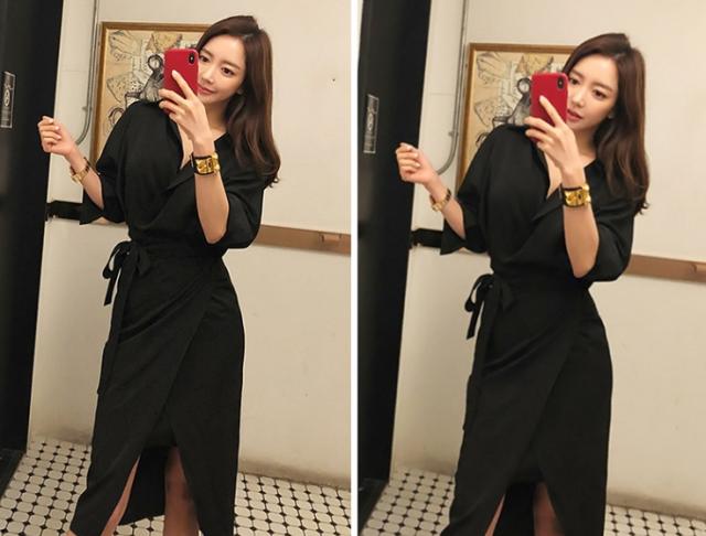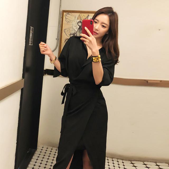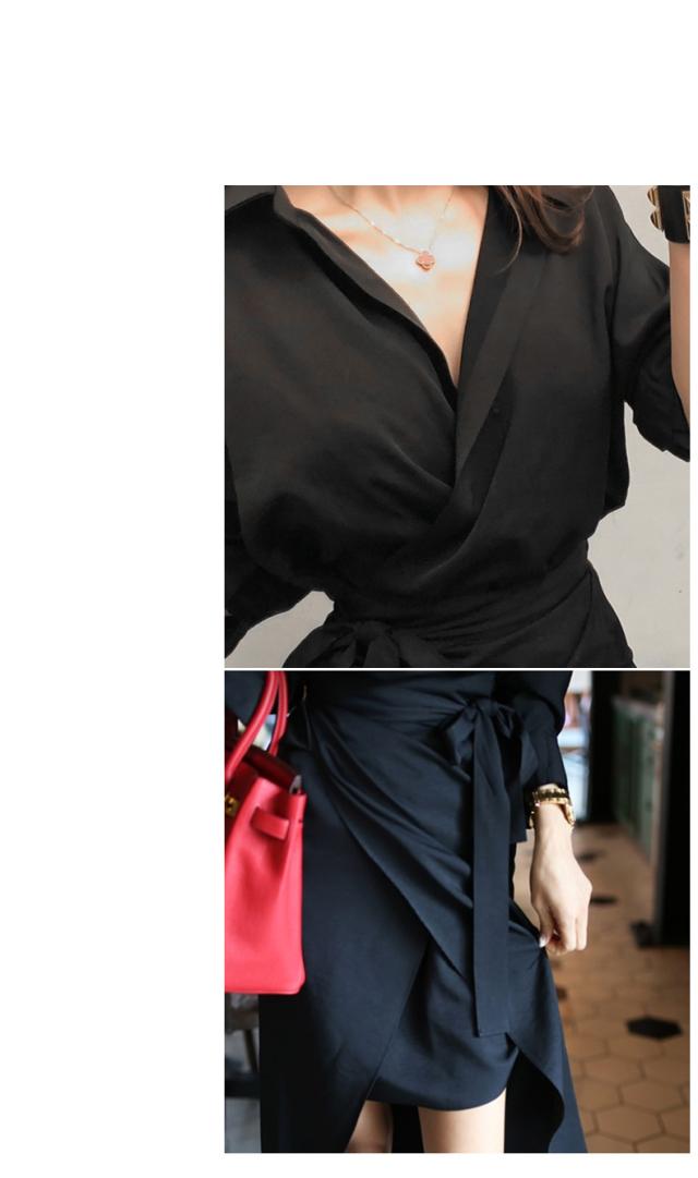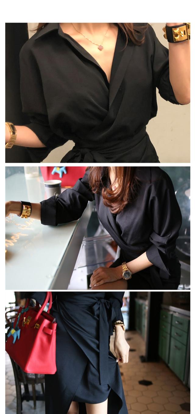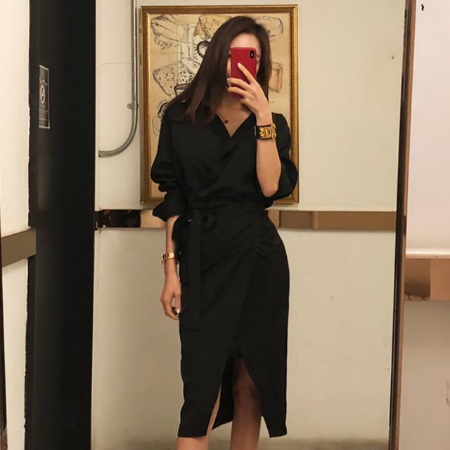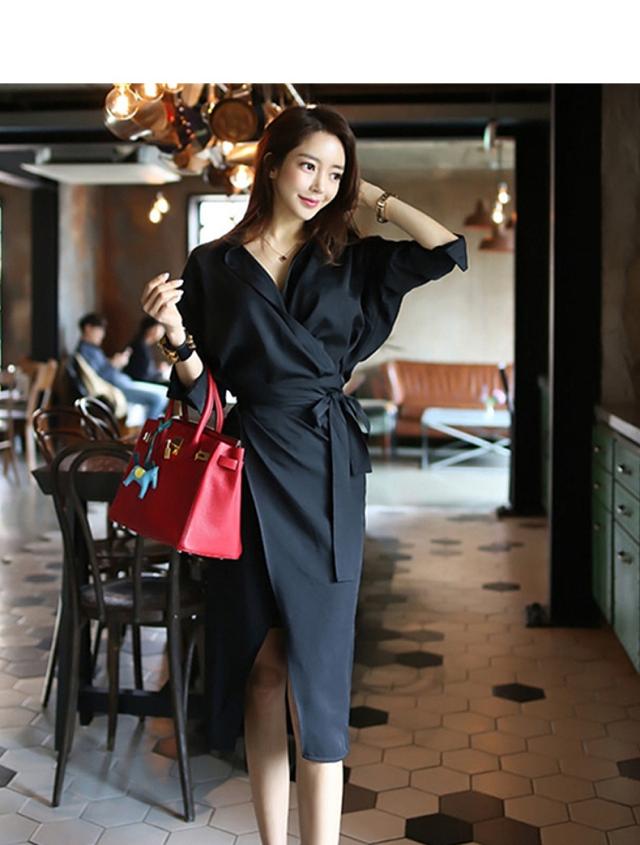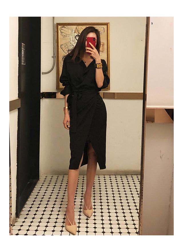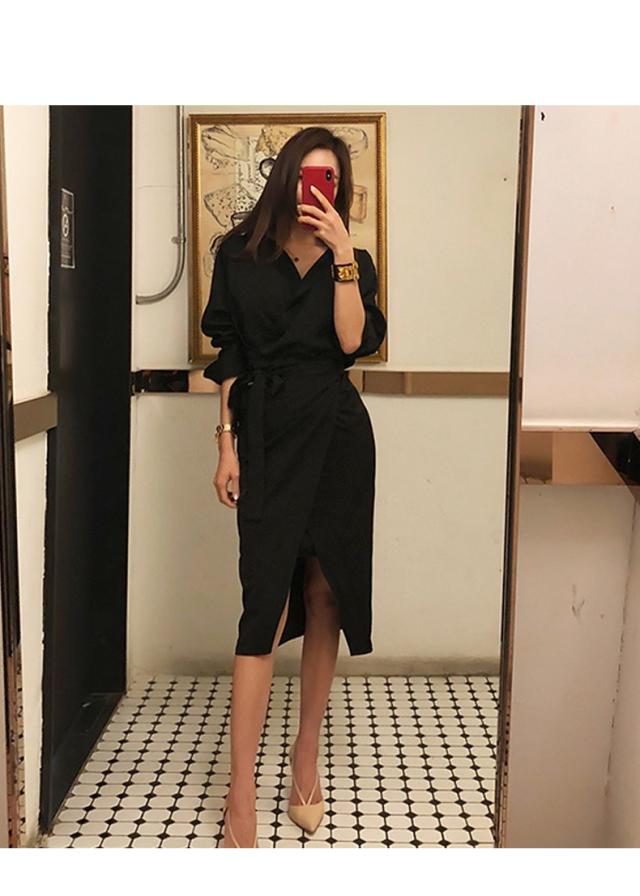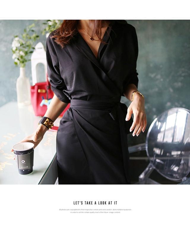 カシュクール シャツ ワンピース ワンピース シャツワンピース 膝丈 ひざ丈 袖あり 長袖 Vネック カシュクール 襟付き スリム 細身 ウエストマーク ウエストリボン ポリエステル 大人可愛い きれいめ シンプル カジュアル 大人 おしゃれ お洒落 大人可愛い 大人女子 こなれ感 無地 春 夏 10代 20代 30代 レディース OL 通勤 学生 通学 デート お出かけ 公園デビュー 女子会 休日 着回し 普段使い 重ね着 韓国 韓国系 サイズ S M L 黒 ブラック