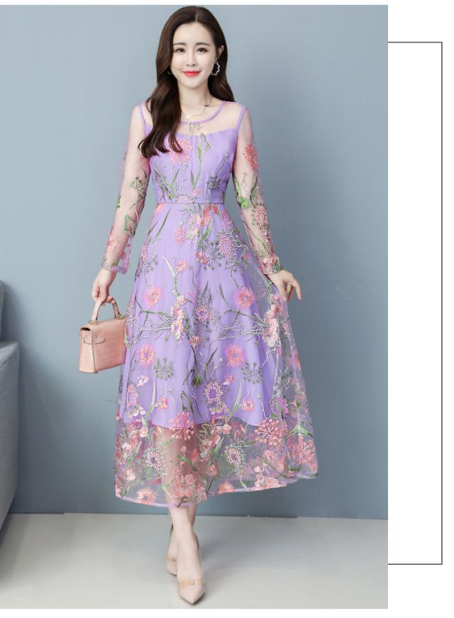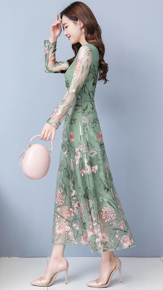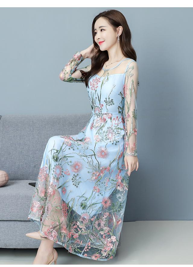刺繍シースルーワンピース ワンピース ワンピドレス ロング ロング丈 袖あり 長袖 ラウンドネック フレア 切り替えデザイン 刺繍 チュール 透け感 シースルー 大人可愛い きれいめ シンプル カジュアル 大人 おしゃれ お洒落 大人可愛い 大人女子 こなれ感 ラブリー キュート ガーリー 花柄 小花柄 フラワー 春 夏 秋 10代 20代 30代 レディース 学生 通学 デート お出かけ 女子会 休日 パーティー イベント 着回し 普段使い サイズ M L XL 2XL 3XL 青 ブルー 緑