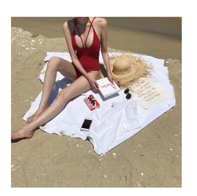 胸元のカットと紐のバランスが絶妙に可愛いワンピース水着♪