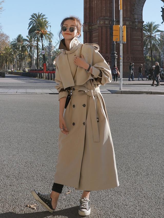 バイカラートレンチコート アウター コート ロング ロング丈 袖あり 長袖 襟付き ベルト ウエストマーク ポリエステル 大人可愛い きれいめ シンプル カジュアル 大人 おしゃれ お洒落 大人可愛い 大人女子 こなれ感 無地 春 秋 10代 20代 30代 レディース OL 通勤 学生 通学 デート お出かけ 公園デビュー 女子会 休日 着回し 普段使い 重ね着 韓国 韓国系 オルチャン ファッション サイズ S M L XL アプリコット