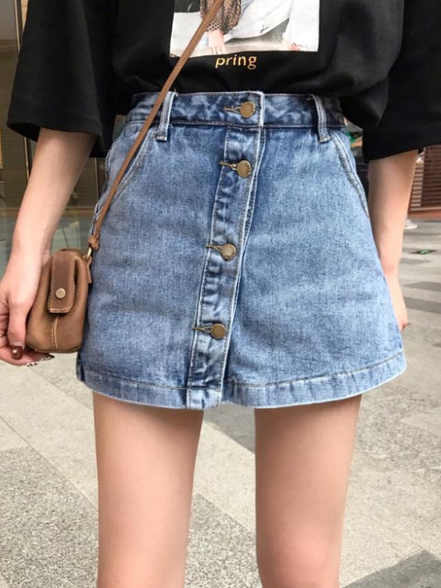 ハイウエスト ショート パンツ レディース 秋 黒 デニム ミニ丈 韓国 巻きスカート ドッキング かわいい おしゃれ フロントボタン 女の子 ダンス衣装 大きいサイズ フェミニン モード セクシー シンプル カジュアル 春 夏 学生 デート リゾート 着回し お出かけ 普段使い