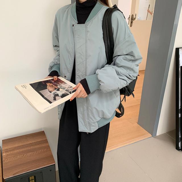 オーバーサイズMA-1 アウター ブルゾン ジャケット 袖あり 長袖 スタンドカラー もこもこ モコモコ ファスナー 前開き かわいい 大人可愛い シンプル カジュアル おしゃれ お洒落 かっこいい 大人可愛い 大人女子 こなれ感 メンズライク 無地 秋 冬 10代 20代 30代 レディース 学生 通学 デート お出かけ 女子会 休日 着回し 普段使い 重ね着 韓国 韓国系 オルチャン 色展開 青 ブルー