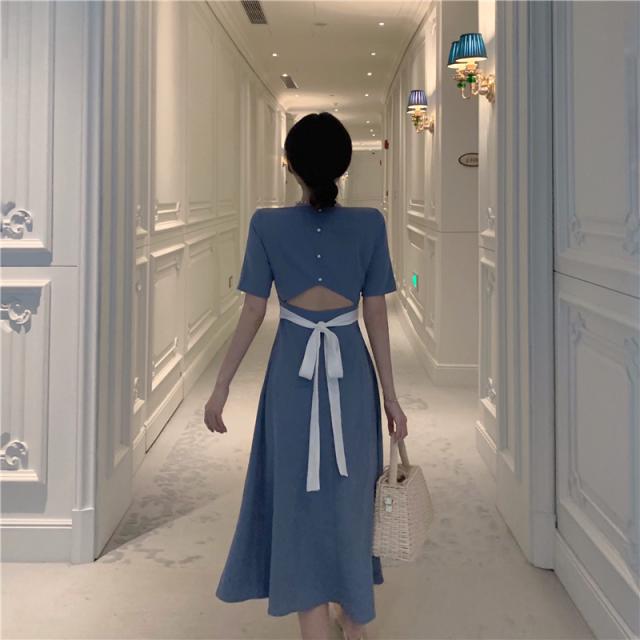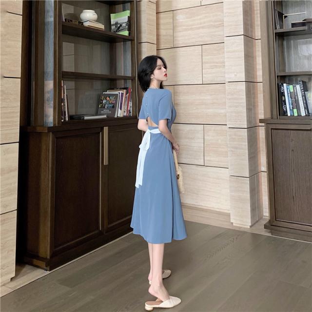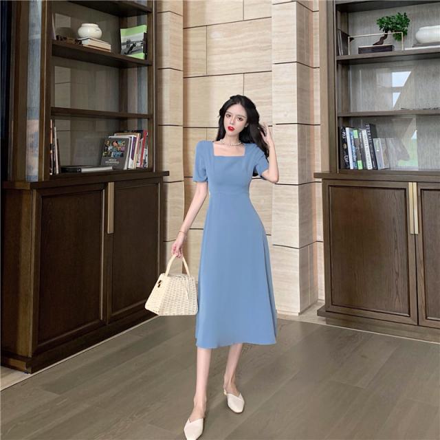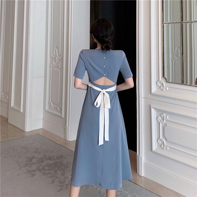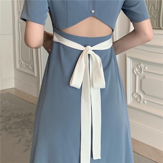 ワンピース 2色展開 フレアワンピース 膝下 ミモレ ミモレ丈 袖あり 半袖 スクエアネック Aライン 切り替えデザイン ウエストマーク ウエストリボン バックシャン バックコンシャス パール かわいい 大人可愛い きれいめ シンプル カジュアル 大人 上品 おしゃれ お洒落 無地 春 夏 秋 10代 20代 30代 レディース ママ デート お出かけ 女子会 お泊まり 休日 リゾート 旅行 普段使い 韓国 オルチャン 楽ちん S M L ブラック ブルー