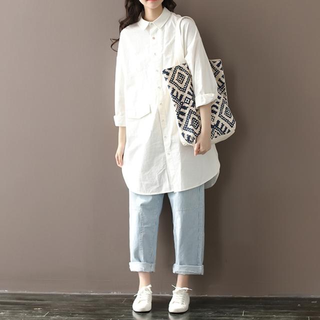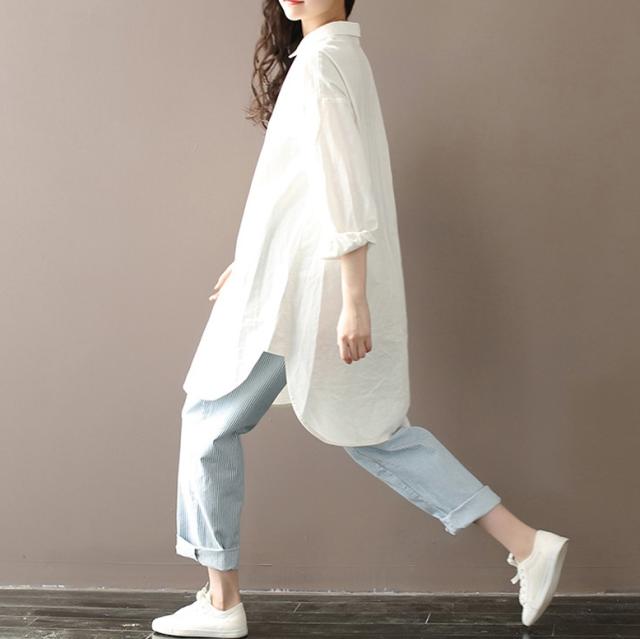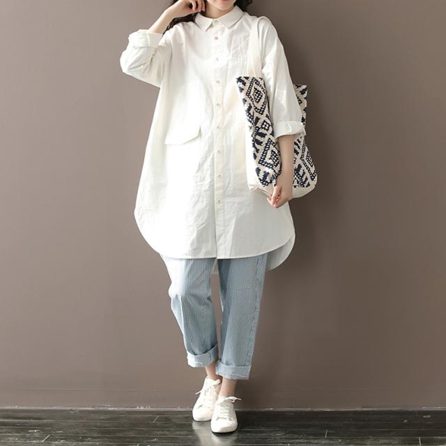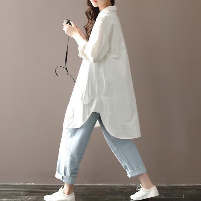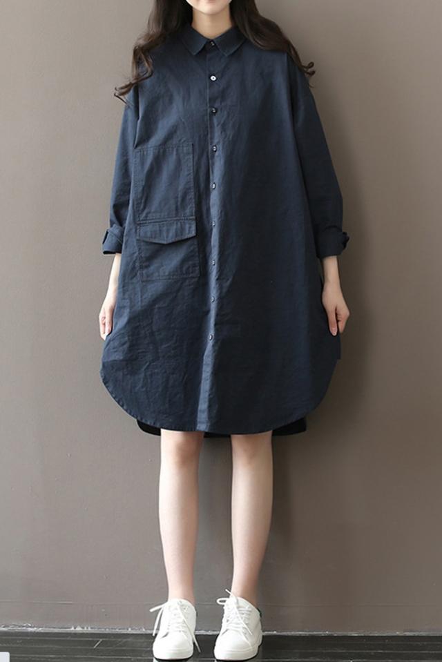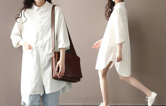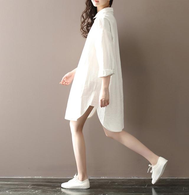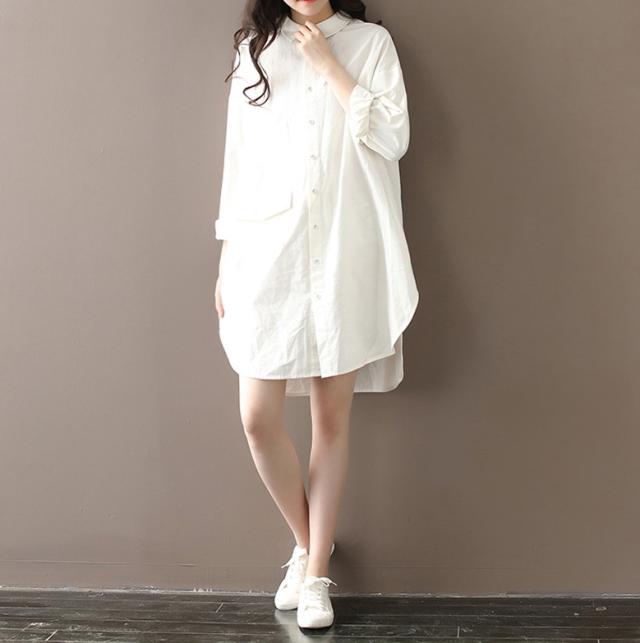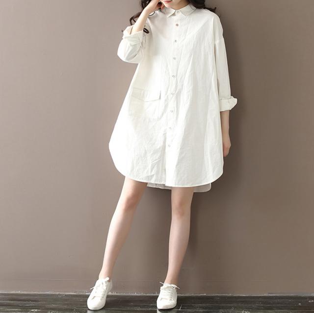 シャツ ワンピース レディースチュニック 膝丈 ひざ丈 膝上 袖あり 長袖 襟付き Iライン 前開き 綿 大人 可愛い きれいめ シンプル カジュアル コーデ お洒落 女子 韓国 オルチャン 白 ネイビー 大きいサイズ 2XL 3XL 春 夏 秋 学生 通学 デート お出かけ 女子会 着回し