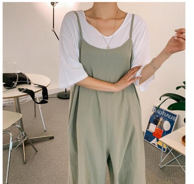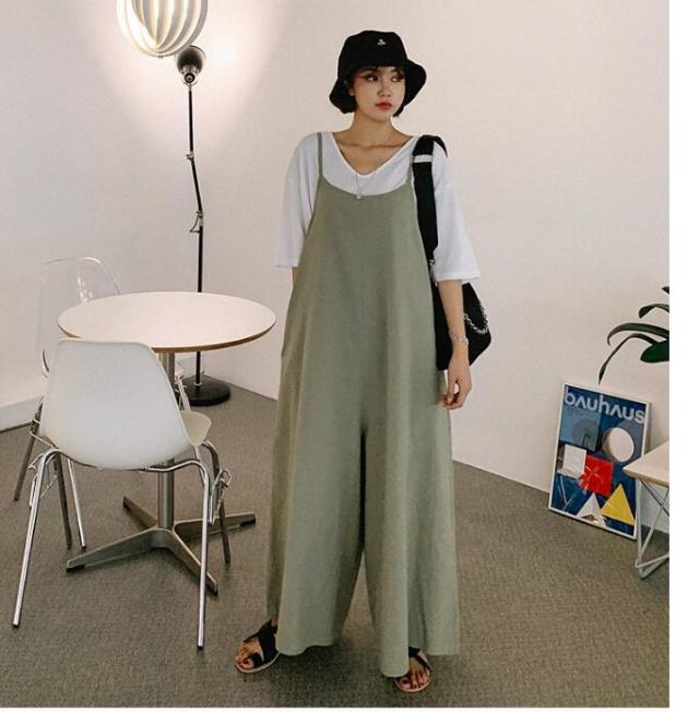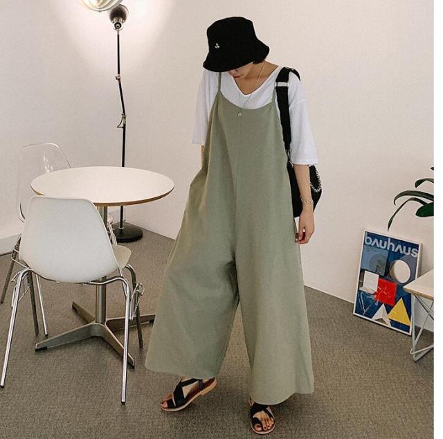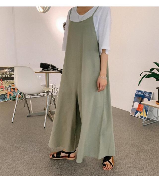ワイドサロペット ボトムス サロペット 袖なし ラウンドネック ワイド 綿 麻 リネン かわいい 大人可愛い きれいめ シンプル カジュアル 大人 おしゃれ お洒落 大人可愛い 大人女子 こなれ感 無地 春 夏 10代 20代 30代 レディース 学生 通学 デート お出かけ 女子会 休日 着回し 普段使い 重ね着 韓国 韓国系 サイズ S M L XL 色展開 緑 グリーン