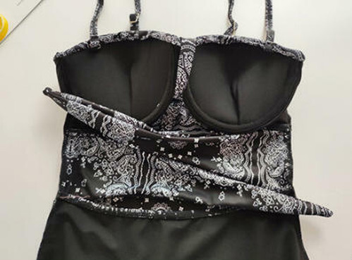 水着 モノキニ ワンピース レディース ビスチェ チューブトップ レース フリル 切り替えデザイン 透け感 胸元 谷間 かわいい 大人 可愛い きれいめ セクシー カジュアル 華やか 大人っぽい 美脚 お洒落 韓国 オルチャン バンダナ柄 ペイズリー柄 夏 海 ビーチ プール