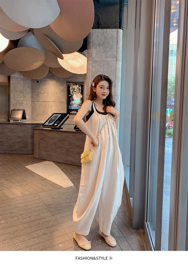 ワイド ルーズ サロペット 秋 レディース 白 黒 オールインワン パンツ ボトムス 背中開き 重ね着 体型カバー ボリューム 袖なし ラウンドネック かわいい 大人 シンプル カジュアル おしゃれ こなれ感 ラフ 無地 春 夏 学生 通学 デート お出かけ 女子会 休日 着回し 普段着