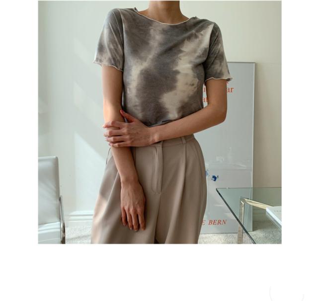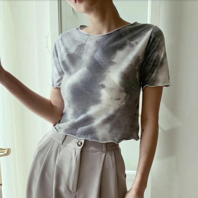 タイダイ染めTシャツ トップス Tシャツ ショート ショート丈 袖あり 半袖 ラウンドネック かわいい 大人可愛い きれいめ シンプル カジュアル おしゃれ お洒落 大人可愛い 大人女子 ラフ 個性的 柄 春 夏 10代 20代 30代 レディース 学生 通学 デート お出かけ 公園デビュー 女子会 休日 着回し 普段使い 重ね着 韓国 韓国系 オルチャン ファッション 色展開 灰色 グレー