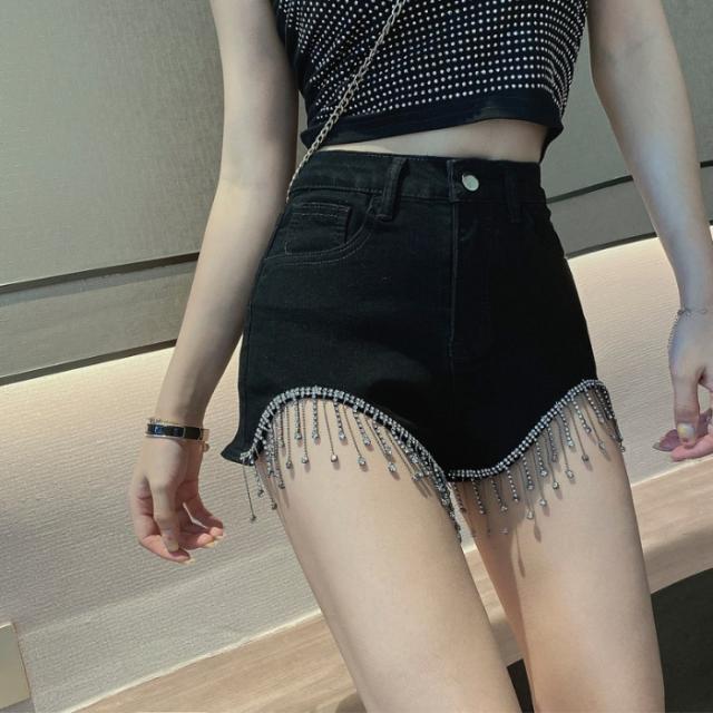デニム ショート パンツ レディース ボトムス パンツ ショート丈 ビジュー きらきら ダメージ 美脚 脚長 大人 可愛い きれいめ 個性的 カジュアル かっこいい クール お洒落 こなれ感 韓国 オルチャン 黒 白 春 夏 学生 通学 休日 デート 女子会 着回し お出かけ