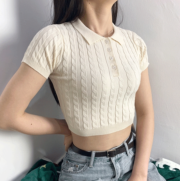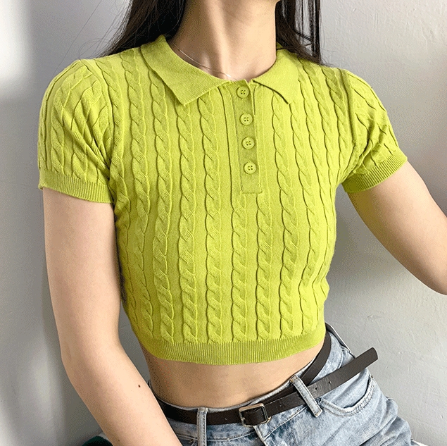 ニットポロシャツ トップス シャツ ショート ショート丈 袖あり 半袖 襟付き スリム タイト 細身 かわいい 大人可愛い きれいめ シンプル カジュアル おしゃれ お洒落 大人可愛い 大人女子 無地 ボタニカル 春 夏 10代 20代 30代 レディース 学生 通学 デート お出かけ 女子会 休日 着回し 普段使い 韓国 韓国系 オルチャン サイズ S M 色展開 黒 ブラック 赤 レッド 緑 グリーン アプリコット