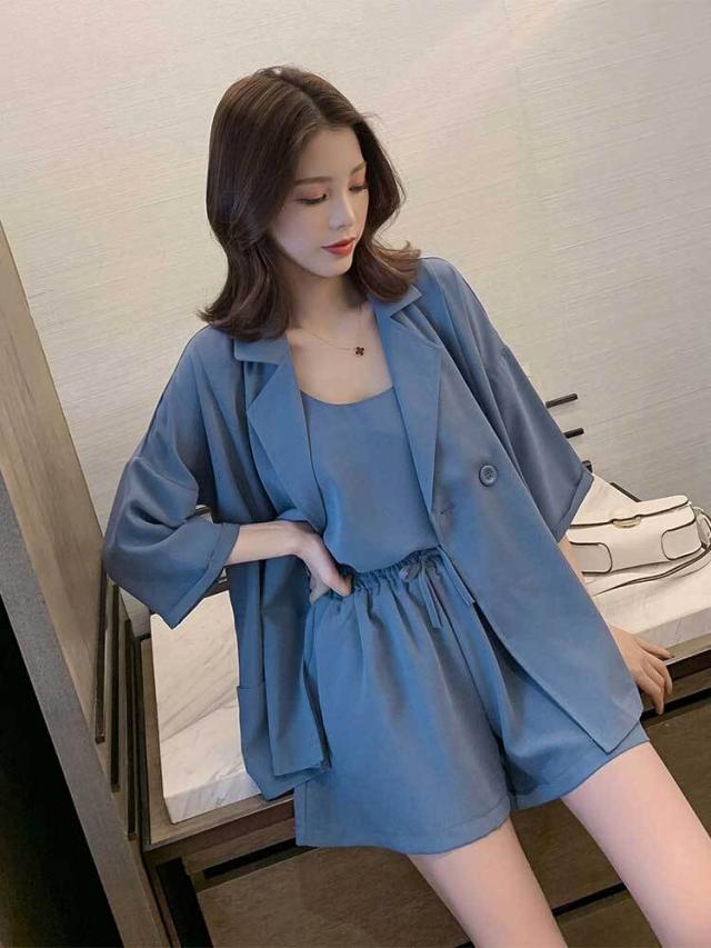 七分袖のジャケット× キャミソール ×ショートパンツの3点セット♪