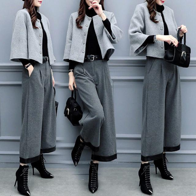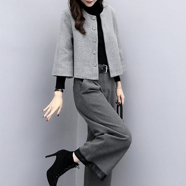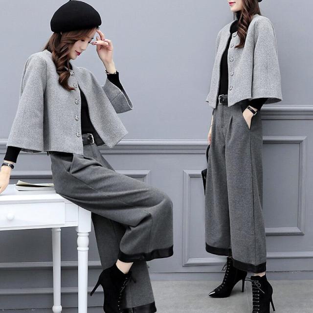 ノーカラージャケット ワイドパンツ セットアップ ジャケット ワイドパンツ 袖あり 長袖 襟なし ワイド 前開き ポリエステル ウール 上下セット 2点セット ツーピース 大人可愛い きれいめ シンプル 大人 上品 おしゃれ お洒落 大人可愛い 大人女子 こなれ感 フォーマル 無地 秋 冬 入学式 入園式 卒業式 卒園式 10代 20代 30代 レディース OL 通勤 学生 通学 デート お出かけ 女子会 休日 着回し 普段使い 韓国 韓国系 オルチャン サイズ S M L XL 2XL 灰色 グレー