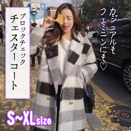 大きめのブロックチェックが目を惹くチェスターコート♪
