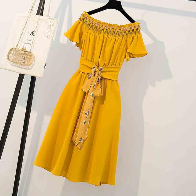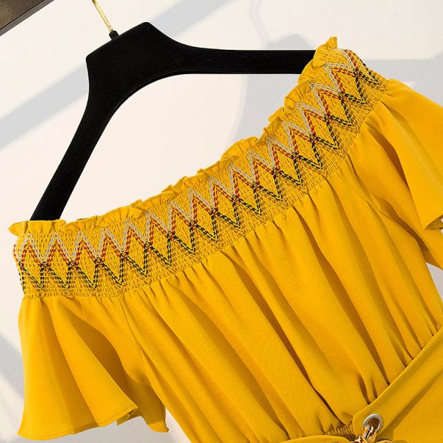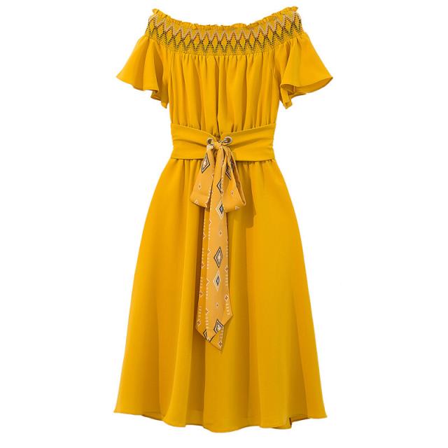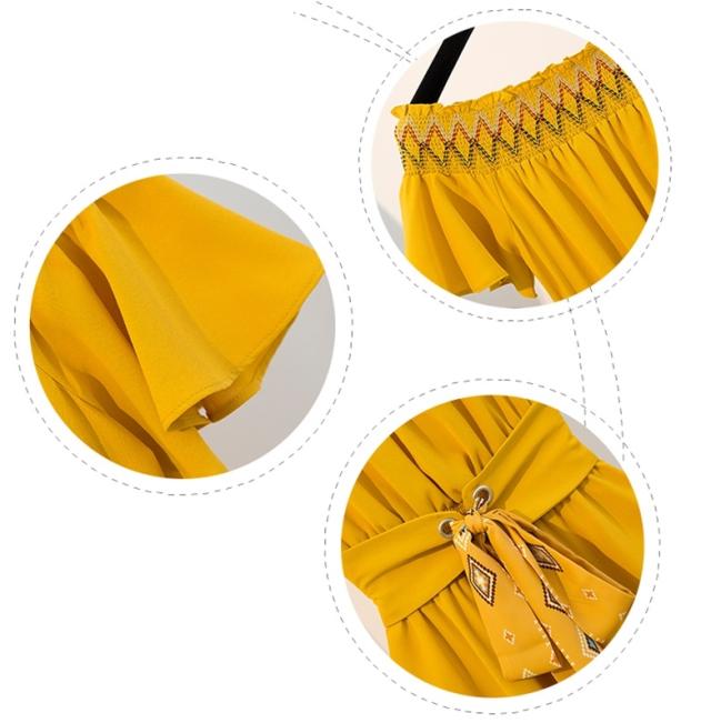 ワンピース オフショル オフショルダー フレアスリーブ フレア袖 半袖 袖あり ウエスタン 柄 シンプル リボン ウエストマーク ハイウエスト ベルト ウエスト絞り シャーリング ギャザー 伸縮性 ポケット付き ロング ゆったり ゆる ルーズ 大きめ 体型カバー 個性的 大人可愛い かわいい 可愛い 大人 フェミニン 通勤 通学 お出かけ デート 旅行 休日 普段使い レディース 20代 30代 夏 大きいサイズ L XL 2XL 3XL 4XL イエロー 黄色