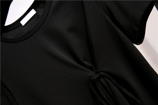 レディース 2点セット セットアップ スカート 上下 アシメ アシンメトリー リボン ギャザー 個性的 重ね着 ラウンドネック シンプル 無地 半袖 ゆったり ミニ スカート ミニ丈 Aライン 台形シルエット フロントボタン かわいい 大きいサイズ 2XL 3XL 黒 白 夏 デート 着回し