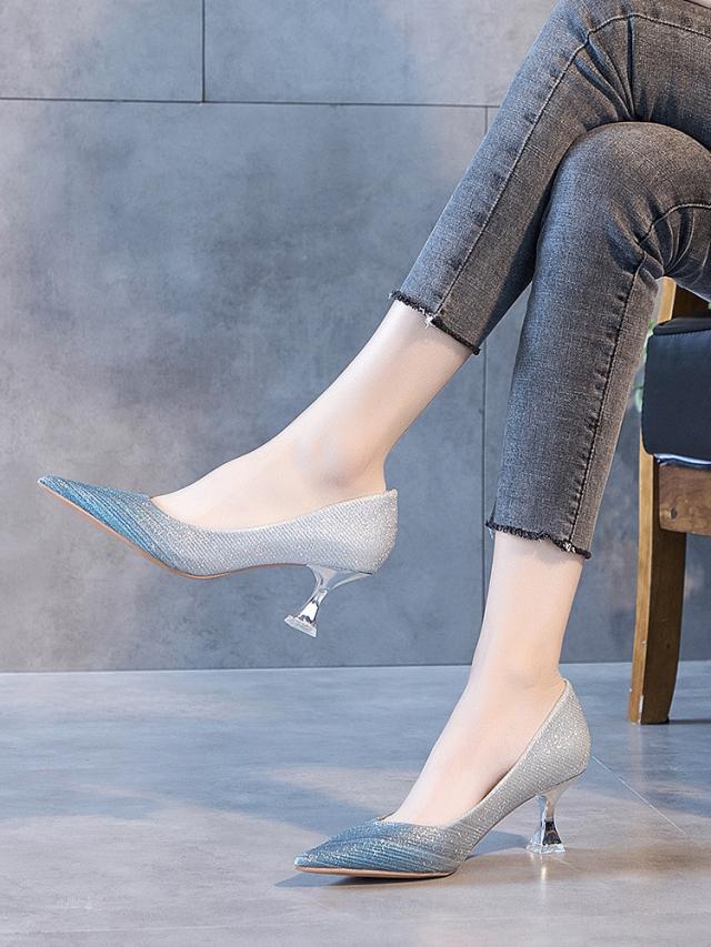 パンプス ポインテッドトゥ PU マット 5cmヒール ポインテッドトゥパンプス ハイヒール キラキラ グリッター ラメ 華やか 太ヒール 存在感 個性的 大人可愛い かわいい 大人 可愛い 大人女子 おしゃれ お洒落 通勤 通学 学生 お出かけ デート 旅行 休日 パーティ イベント
