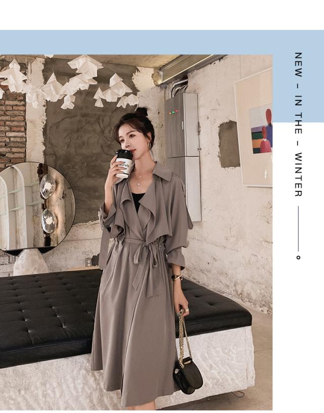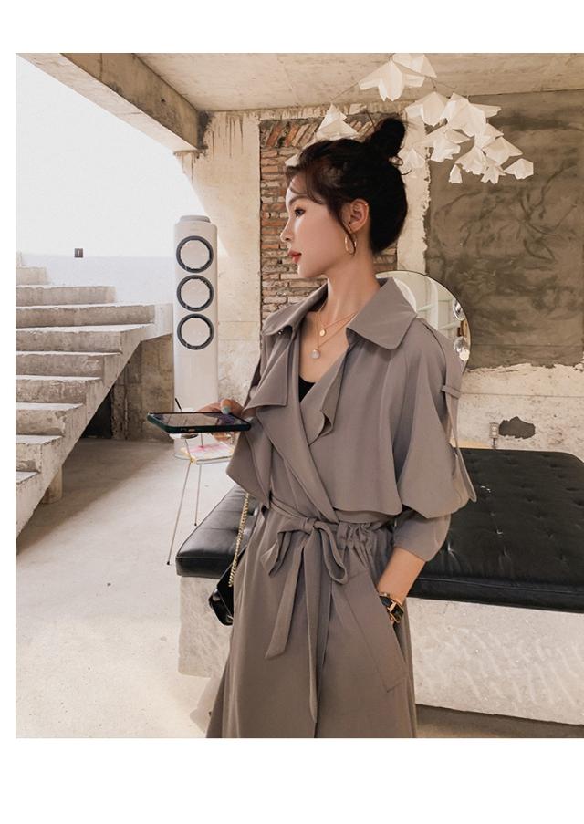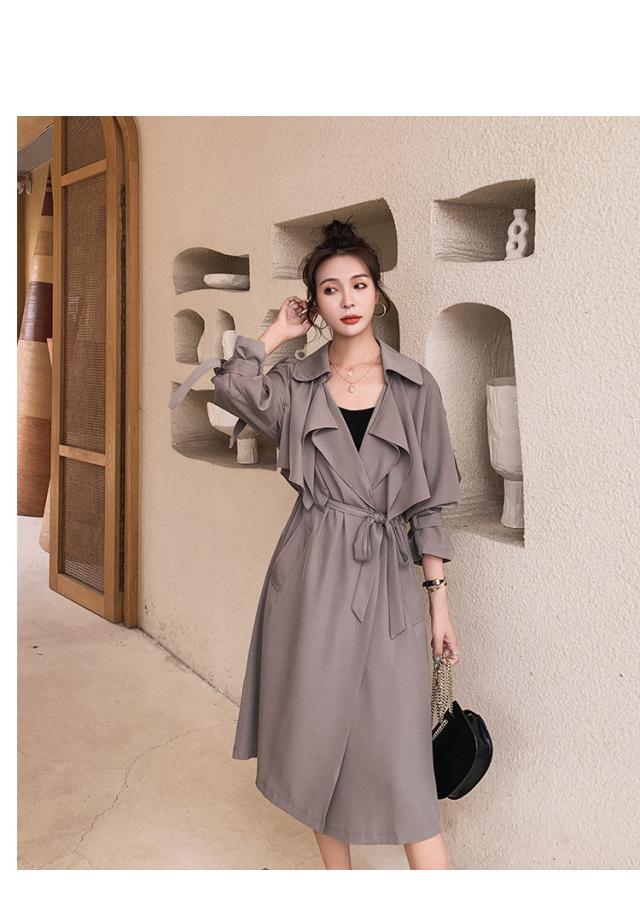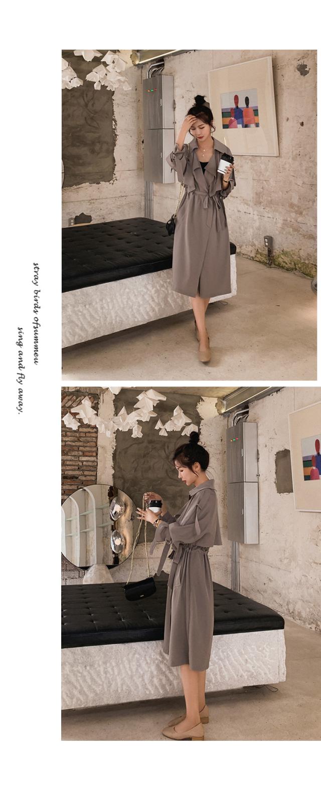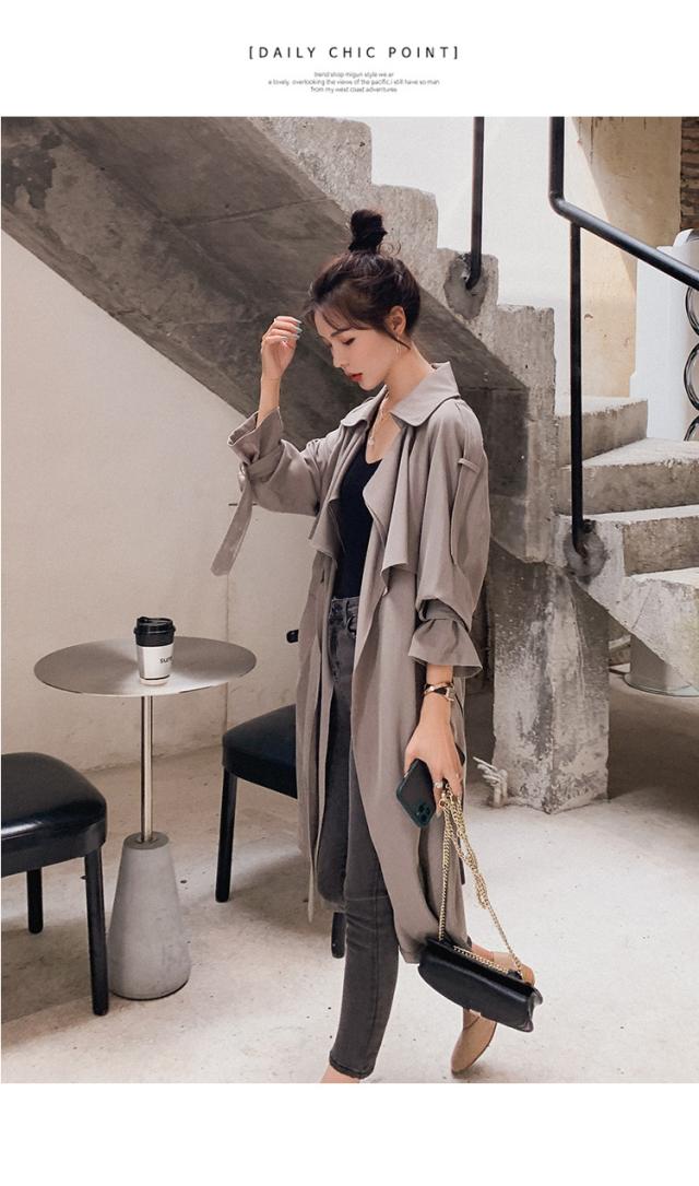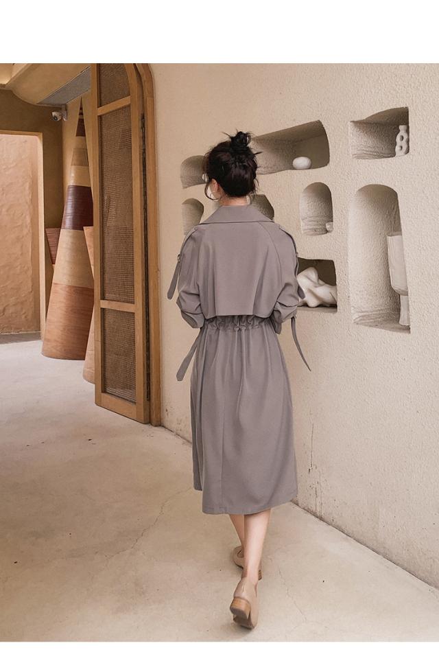とろみ トレンチ コート レディース アウター ミディアム丈 ラグラン袖 長袖 Vネック 襟付き Aライン ウエストマーク ウエストリボン 前開き きれいめ シンプル カジュアル 大人 おしゃれ お洒落 可愛い 女子 こなれ感 韓国 オルチャン グレー 秋 冬 休日 デート 女子会