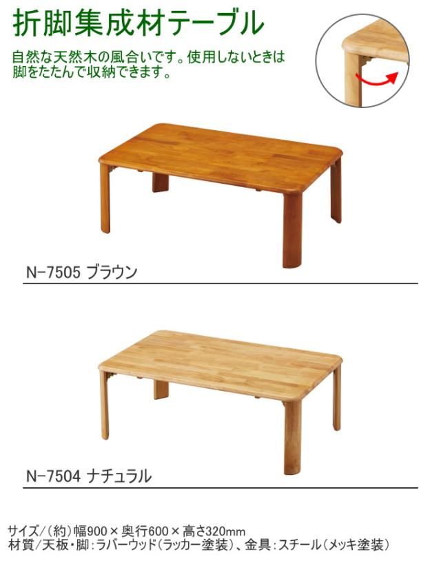 折脚集成材テーブル 900×600mm 送料無料 テーブル 木製 折り畳み 家具 インテリア パール金属