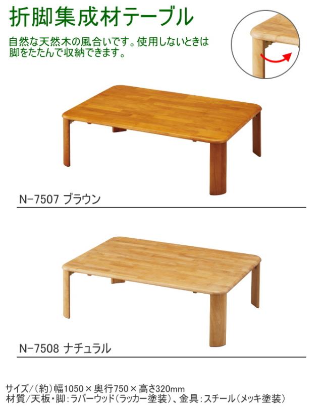 折脚集成材テーブル 1050×750mm 送料無料 テーブル 木製 折り畳み 家具 インテリア パール金属