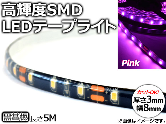 AP LEDテープライト 黒基盤 ピンク 5M 12V AP-LEDTP5BK SMDテープ LEDラインテープ LEDテープ テープライト LED SMD テープ テープ型 イルミネーション 正面発光 高輝度 防水 2835 5メートル 5m ピンク pink ブラック 黒 black 外装 インテリア 電装パーツ ドレスアップ automobile motorcar オートモービル モーターカー カー 車 自動車 車両