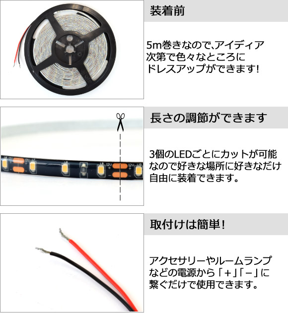 ■LED3個/5cmごとにカットして使用する事も可能です。