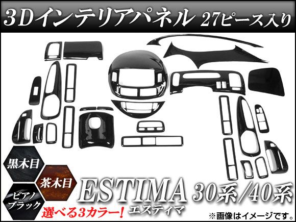 3Dインテリアパネル トヨタ エスティマ 30系/40系 2000年01月〜2005年11月 選べる3インテリアカラー 入数:1セット(27個) AP-INT-016 インテリアカラー: 黒木目 茶木目 ピアノブラック