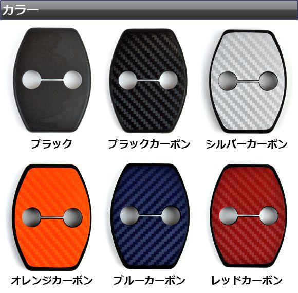 ドアロックストライカーカバー ABS製 カーボン調 トヨタ車汎用 選べる6カラー 入数:1セット(4個) AP-FT-01 カラー: ブラック オレンジカーボン シルバーカーボン ブラックカーボン ブルーカーボン レッドカーボン