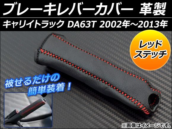 ブレーキレバーカバー スズキ キャリイトラック DA63T 2002年〜2013年 革製 レッドステッチ AP-BRC-S15-RD