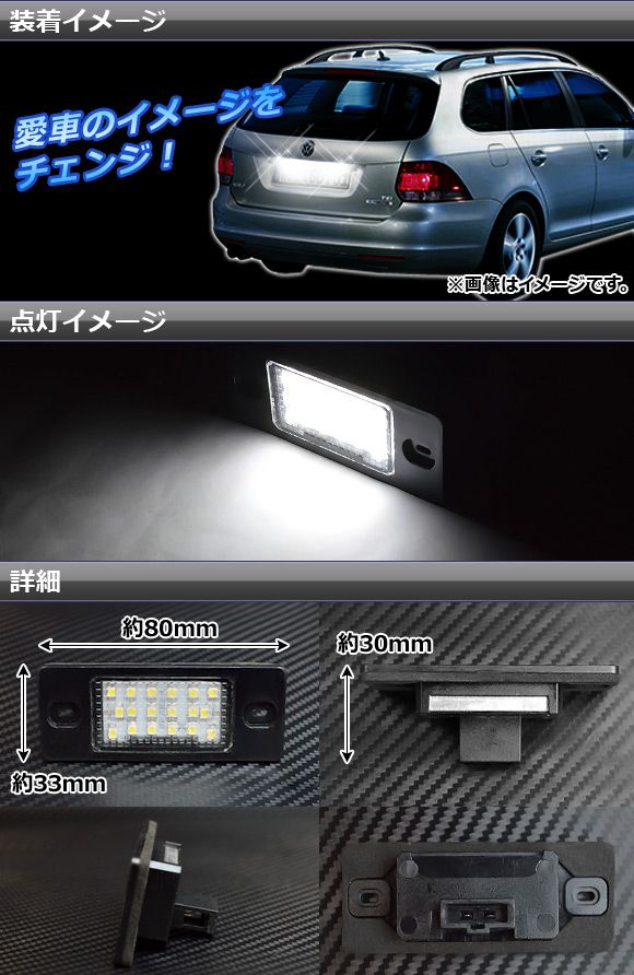 AP LEDライセンスランプ 片側18連 純正互換 AP-LC-VW7L 入数:1セット(2個) フォルクスワーゲン ゴルフ5/ゴルフ5ヴァリアント 1K系 2007年〜2014年