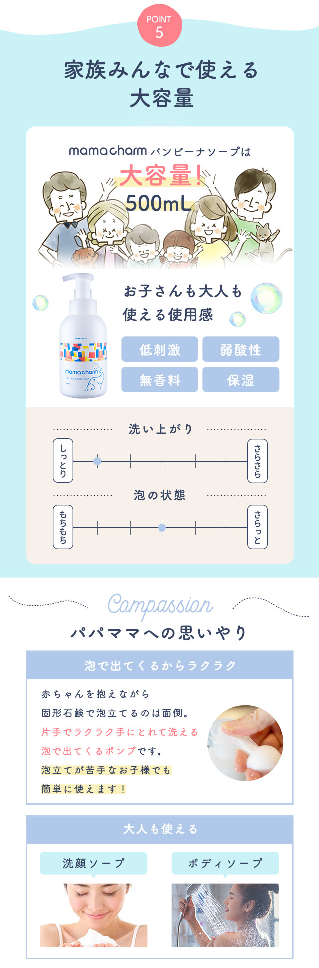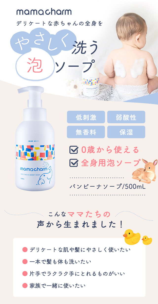 ベビーソープ 泡 500ml mamacharm バンビーナソープ ボディソープ ベビー シャンプー 沐浴 無添加 全身 キッズソープ キッズ ベビー ソープ 子ども 赤ちゃん ボディーソープ 石鹸 せっけん ボディウォッシュ ボディー ボディ 石けん 無香料 ママチャーム