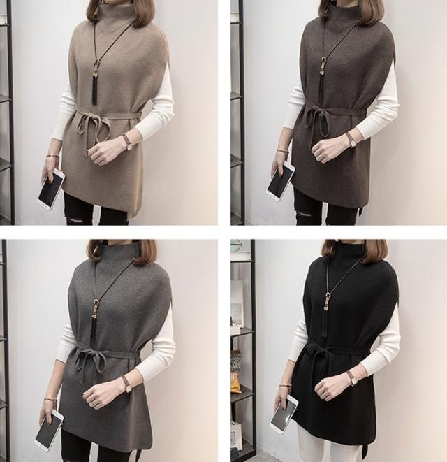 セットアップ ニット セーター ベスト 2点セット ツーピース トップス 長袖 袖あり ハイネック ハーフタートルネック ウエストマーク ウエストリボン 腰ひも スリット ゆったり ルーズ 重ね着 レイヤード カジュアル 大人可愛い かわいい 可愛い 大人女子 おしゃれ お洒落 通勤 通学 お出かけ デート 旅行 休日 普段着 普段使い 着回し レディース 20代 30代 40代 春 秋 S M L XL ダークグレー 灰色 ブラウン 茶色 ブラック 黒 カーキ