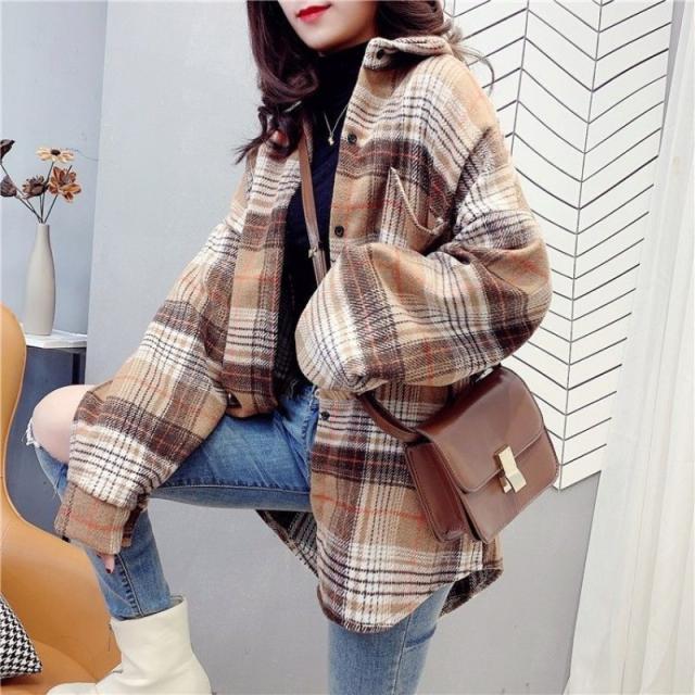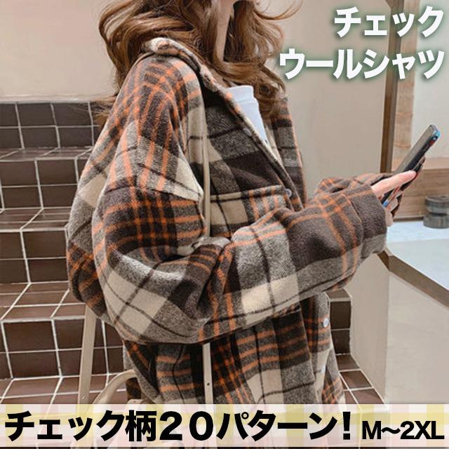 トップス ウール シャツ チェック柄 襟付き ポロ襟 長袖 袖あり フロントボタン ゆったり ゆる ルーズ 羽織り 羽織 カジュアル メンズライク ボーイッシュ 大人可愛い かわいい 可愛い 大人女子 おしゃれ お洒落 通勤 通学 学生 お出かけ デート 旅行 休日 普段着 普段使い 着回し レディース 10代 20代 春 秋 大きいサイズ M L XL 2XL ブラウン 茶色 ブルー 青 ネイビー 紺 グレー 灰色 ホワイト 白 ピンク イエロー 黄色 ブラック 黒 パープル 紫 グリーン 緑