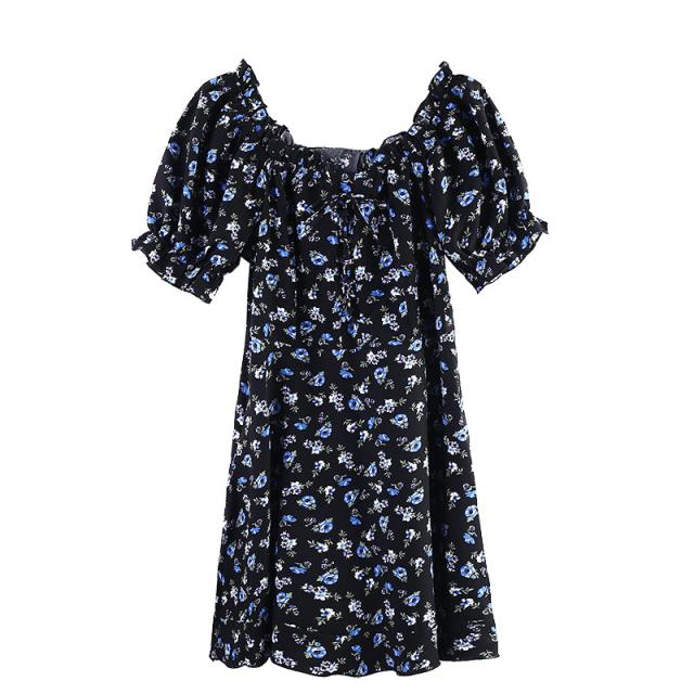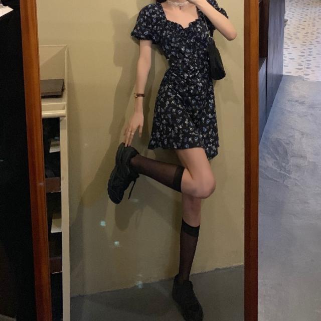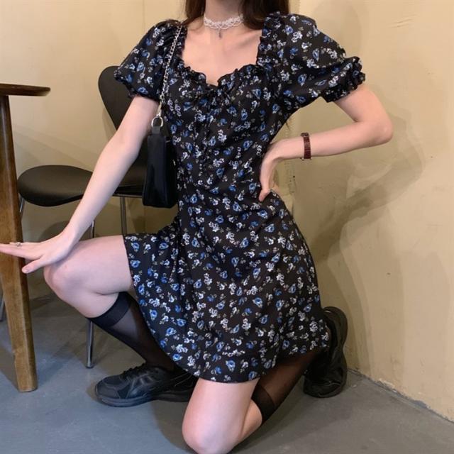 花柄 ワンピース ミニ ミニ丈 膝上 袖あり 半袖 パフスリーブ スクエアネック 襟なし フリル ハイウエスト かわいい 大人可愛い シンプル カジュアル 大人 おしゃれ お洒落 大人女子 ガーリー 主役級 柄 花柄 小花柄 フラワー 夏 10代 20代 レディース 通勤 学生 通学 デート お出かけ 女子会 休日 旅行 着回し 普段使い 韓国 韓国系 オルチャン 大きいサイズ S M L XL 2XL 3XL 黒 ブラック