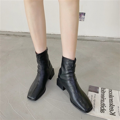 ショートブーツ シューズ 靴 くつ クツ ブーツ ヒール 5cmヒール 太ヒール チャンキーヒール スクエアトゥ 歩きやすい 履きやすい 裏起毛 レザー PU かわいい 大人可愛い きれいめ シンプル カジュアル 大人 おしゃれ お洒落 無地 秋 冬 10代 20代 30代 レディース 通勤 学生