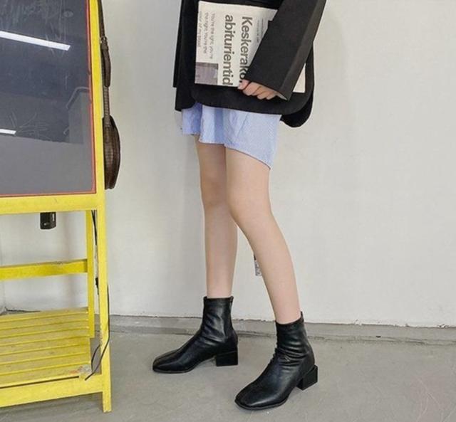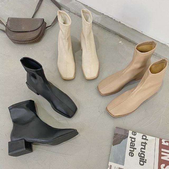 ショートブーツ シューズ 靴 くつ クツ ブーツ ヒール 5cmヒール 太ヒール チャンキーヒール スクエアトゥ 歩きやすい 履きやすい 裏起毛 レザー PU かわいい 大人可愛い きれいめ シンプル カジュアル 大人 おしゃれ お洒落 無地 秋 冬 10代 20代 30代 レディース 通勤 学生 通学 デート お出かけ 女子会 休日 旅行 デイリー 普段使い 韓国 韓国系 サイズ 22.5cm 23.0cm 23.5cm 24.0cm 24.5cm 色展開 黒 ブラック ベージュ アプリコット