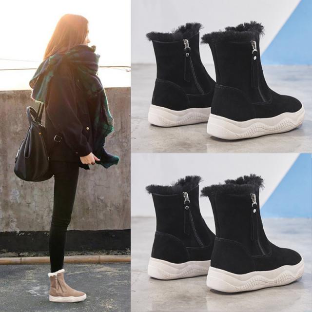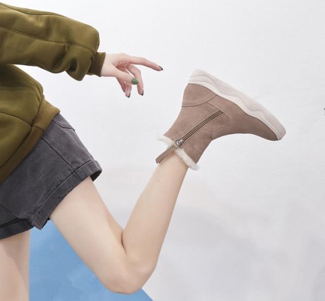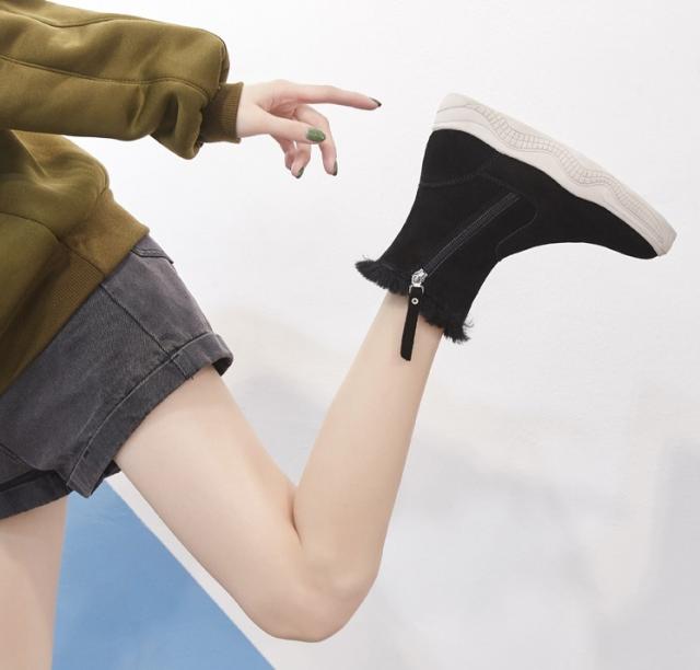 ボア ショートブーツ シューズ 靴 くつ クツ ブーツ スノーブーツ 5cmヒール 厚底 ラウンドトゥ 歩きやすい 履きやすい 走れる 裏ボア 防寒 暖かい あったか スウェード ファー かわいい 大人可愛い シンプル カジュアル 大人 おしゃれ お洒落 無地 秋 冬 10代 20代 レディー