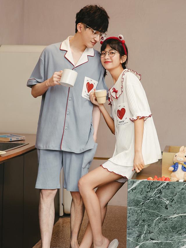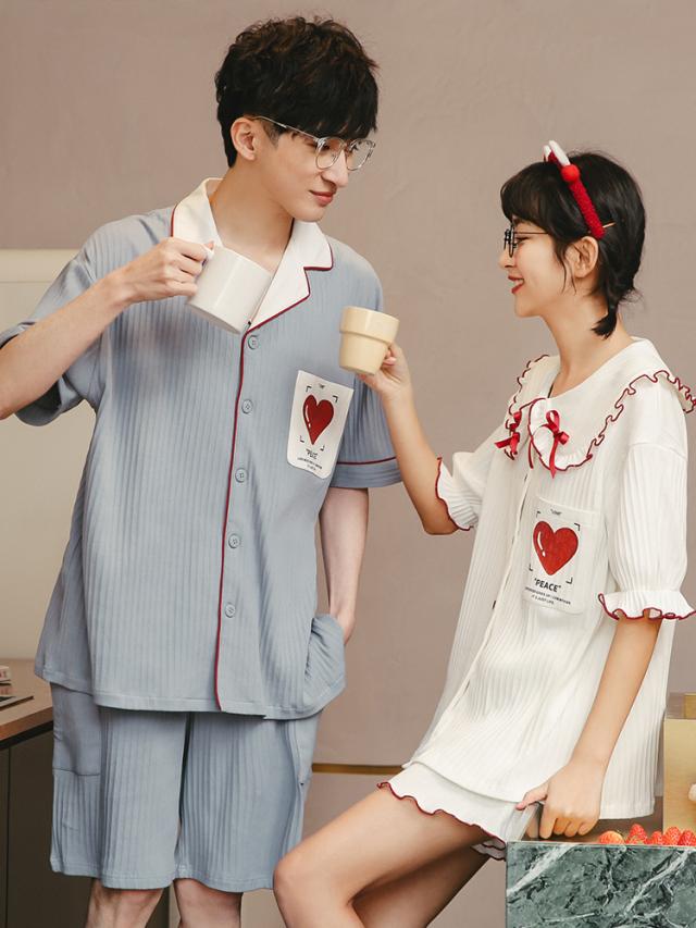 ルームウェア パジャマ 寝巻き トップス ボトムス 上下セット 2点セット ツーピース 半袖 袖あり 襟付き ハート フリル 大きめ襟 リボン ポケット ボタン 前開き 綿 コットン ハーフパンツ パンツ ズボン ショートパンツ 短パン ハーフ ゆったり ゆる ルーズ カップル お揃い ペア かわいい 可愛い 大人可愛い おしゃれ お洒落 学生 部屋着 お泊り デート 休日 旅行 学生 男性用 女性用 レディース メンズ 10代 20代 夏 大きいサイズ M L XL 2XL ブルー 青 ホワイト 白