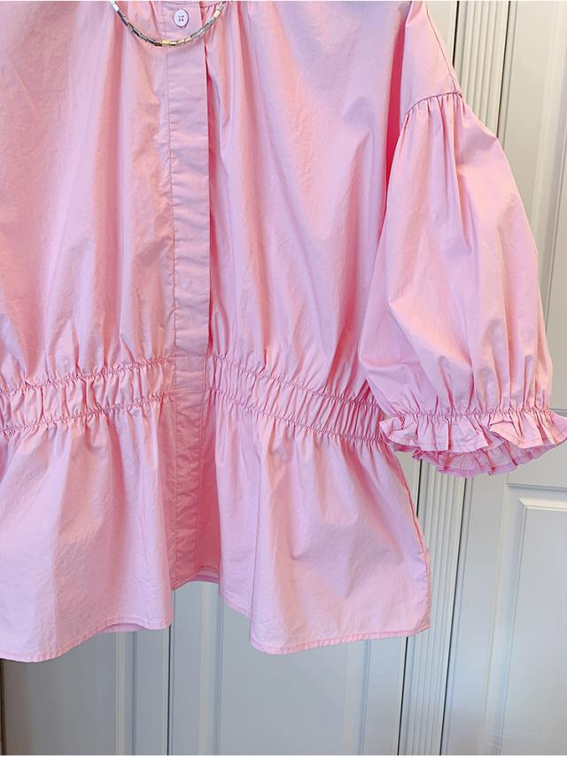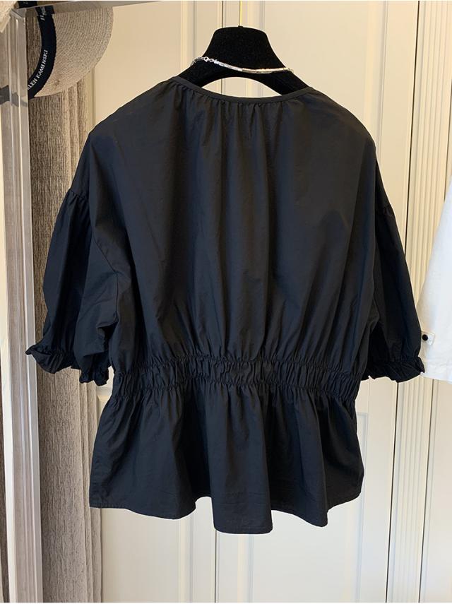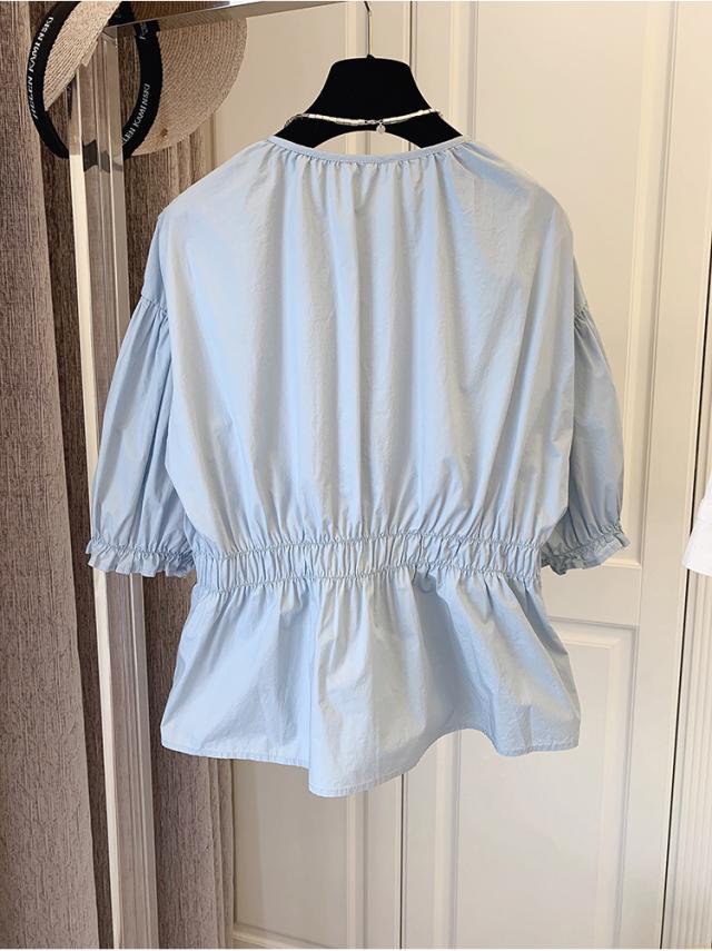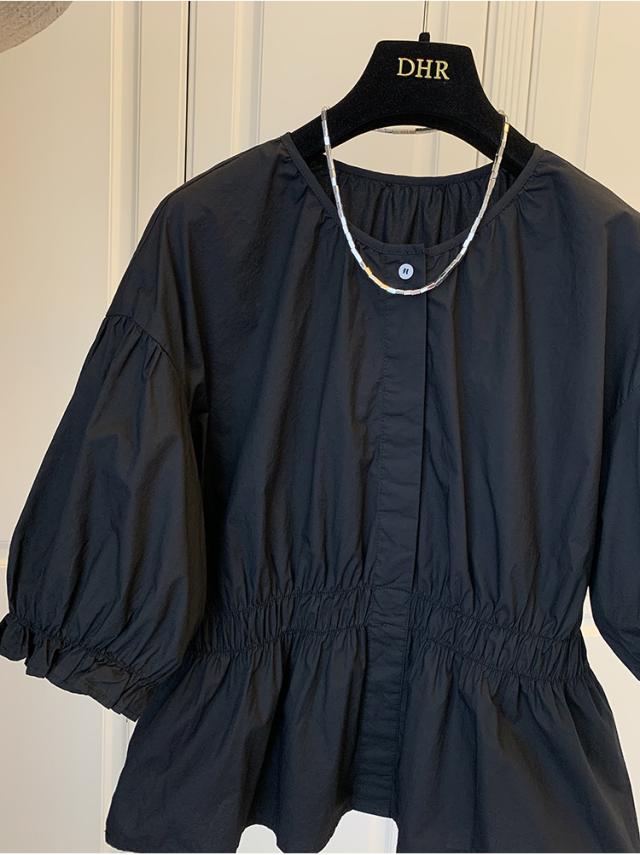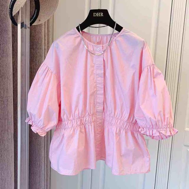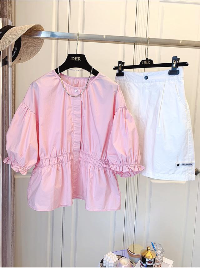 トップス 半袖 シャツ ブラウス 白シャツ ショート ショート丈 袖あり パフスリーブ ドロップショルダー ラウンドネック 襟なし ペプラム 切り替えデザイン フリル 大人可愛い シンプル カジュアル 大人 おしゃれ お洒落 大人女子 キュート ガーリー ルーズ 無地 春 夏 秋 30代 40代 50代 レディース ママ 通勤 デート お出かけ 公園デビュー 女子会 休日 旅行 着回し 普段使い 重ね着 韓国 体系カバー ゆったり フリーサイズ 色展開 白 ホワイト 黒 ブラック 青 ブルー ピンク