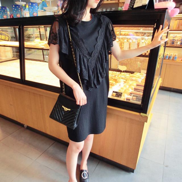 ミニ丈 Tシャツワンピース Tシャツ ワンピース ミニ 膝上 袖あり 半袖 ラウンドネック 襟なし レース フリル 透け感 シースルー かわいい 大人可愛い シンプル カジュアル 大人 上品 おしゃれ お洒落 大人女子 ルーズ 個性的 柄 花柄 小花柄 フラワー 夏 10代 20代 レディース 通勤 学生 通学 デート お出かけ 女子会 休日 旅行 着回し 普段使い 重ね着 韓国 韓国系 楽ちん 体系カバー ゆったり 大きいサイズ M L XL 2XL 黒 ブラック