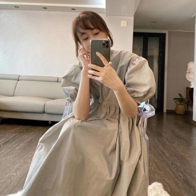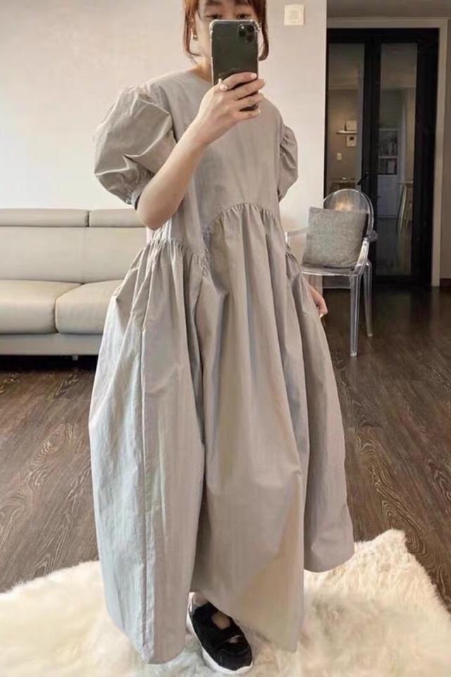 パフスリーブ ワンピドレス ワンピース 膝下 ロング ロング丈 マキシ マキシ丈 袖あり 半袖 ボリューム袖 ラウンドネック 襟なし フレア Aライン 切り替えデザイン ハイウエスト かわいい 大人可愛い シンプル カジュアル 大人 おしゃれ お洒落 大人女子 ラブリー キュート ルーズ 主役級 存在感 無地 春 夏 秋 10代 20代 30代 レディース ママ マタニティ 通勤 学生 通学 デート お出かけ 女子会 休日 旅行 普段使い 韓国 楽ちん 体系カバー ゆったり フリーサイズ 灰色 グレー