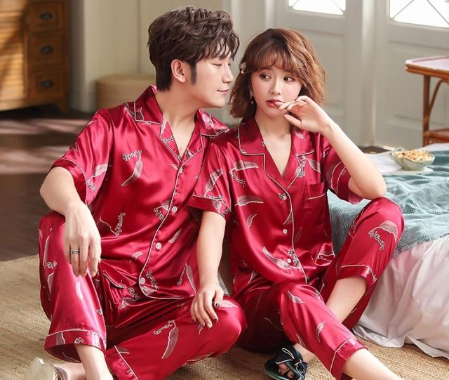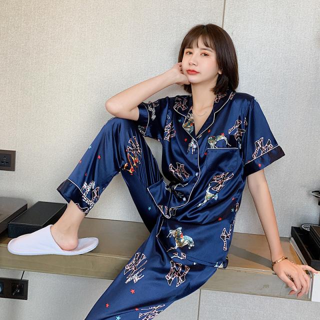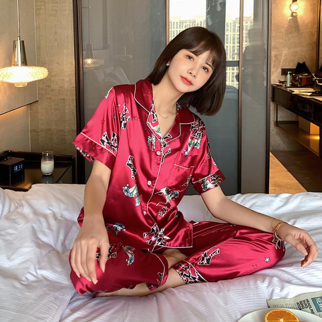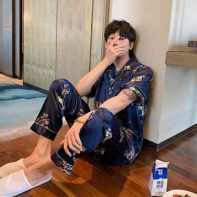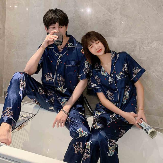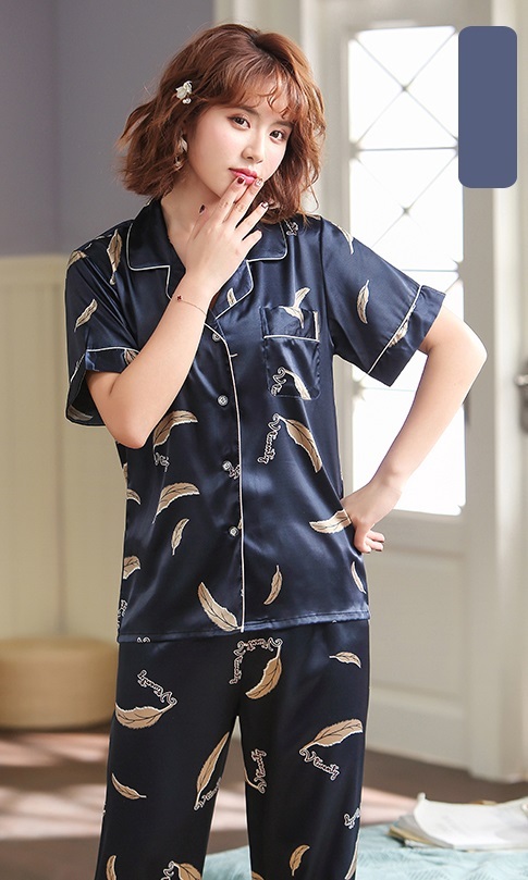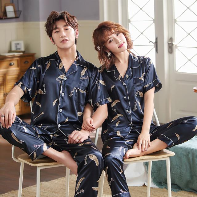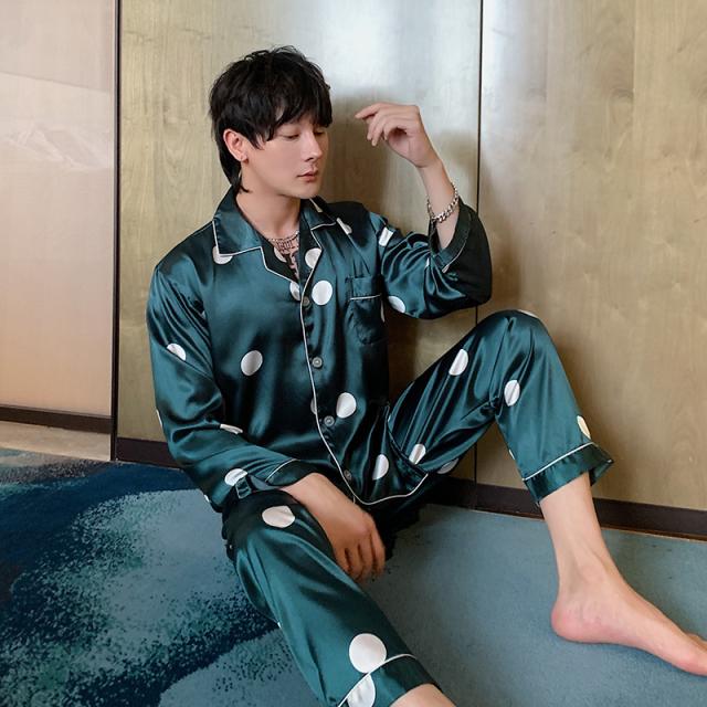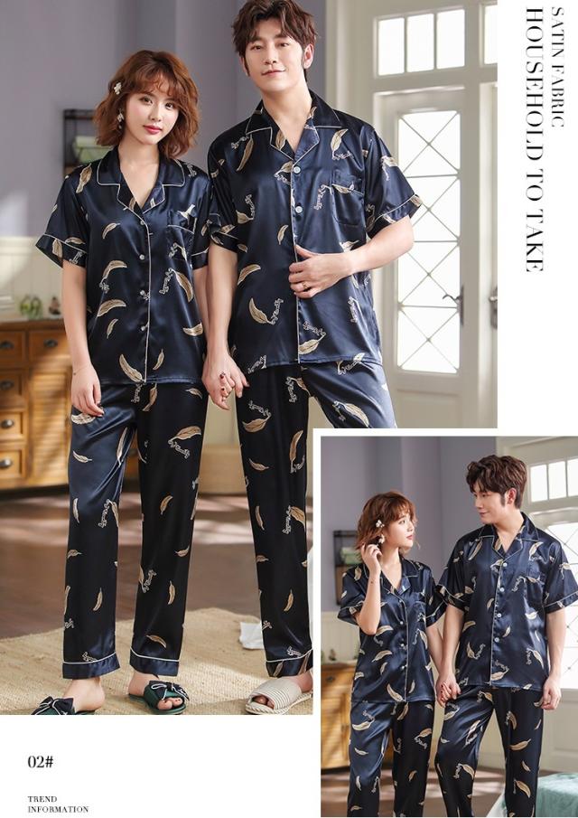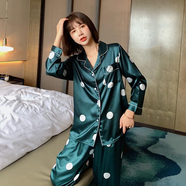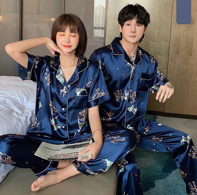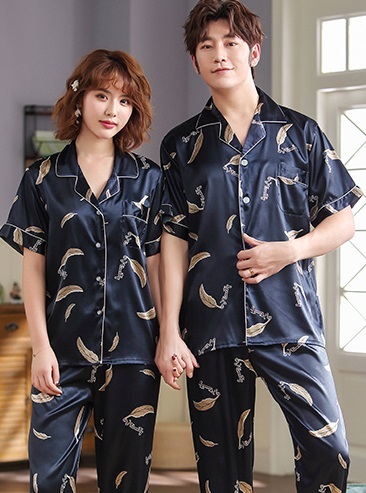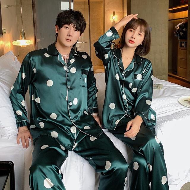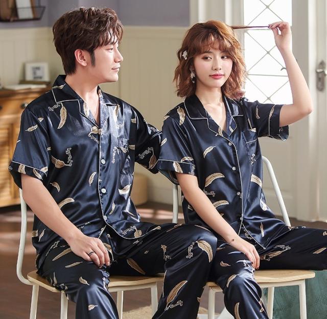 ルームウェア パジャマ 寝巻き トップス ボトムス 上下セット 2点セット ツーピース 半袖 袖あり 襟付き 水玉 ドット柄 柄 羽根 ポケット フロントボタン 前開き シルク ロングパンツ パンツ ズボン ロング ロング丈 ゆったり ゆる ルーズ カップル お揃い ペア かわいい 可